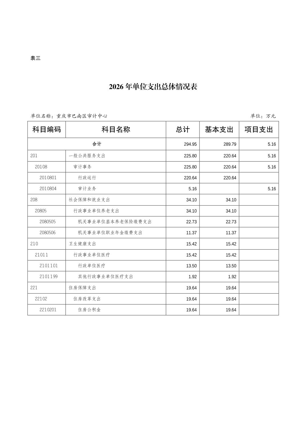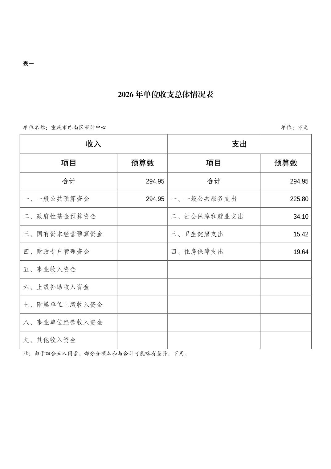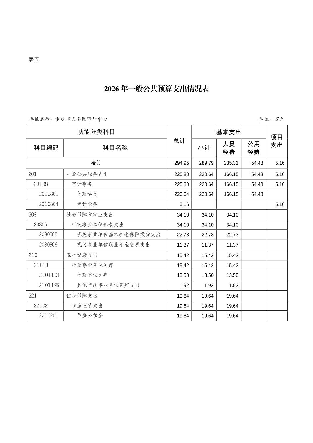 重庆市巴南区审计中心2026年单位预算情况说明