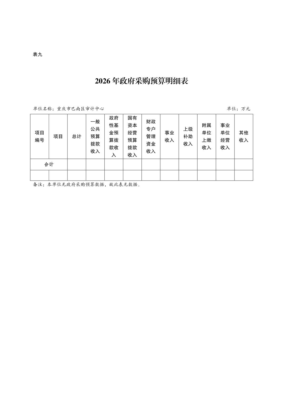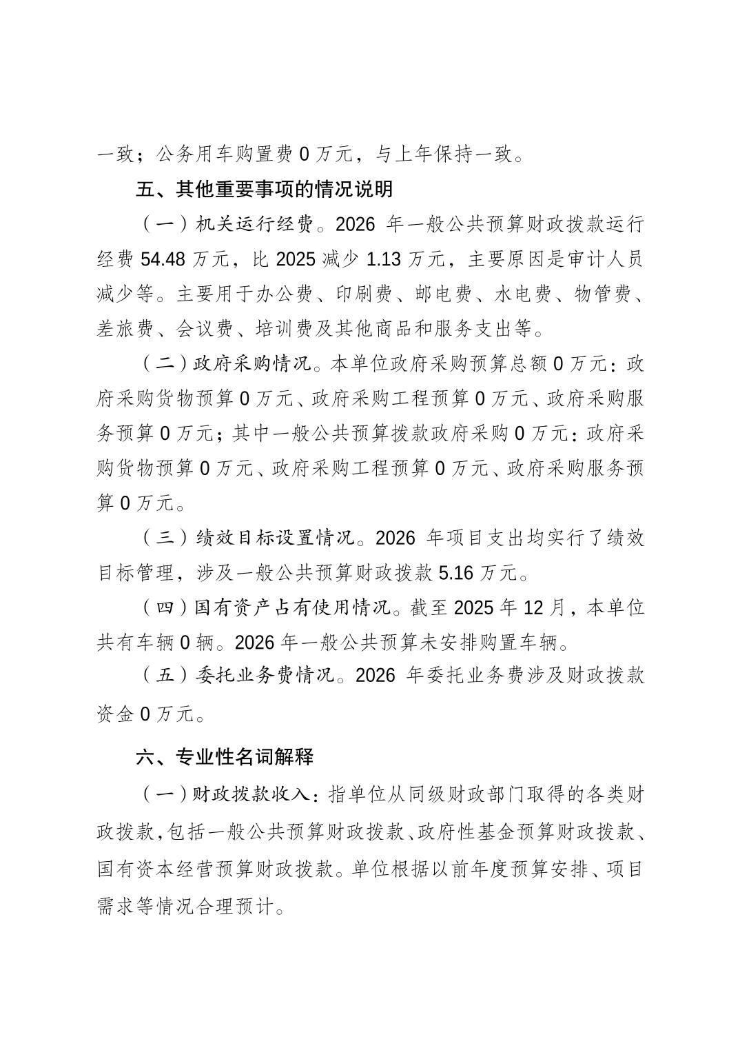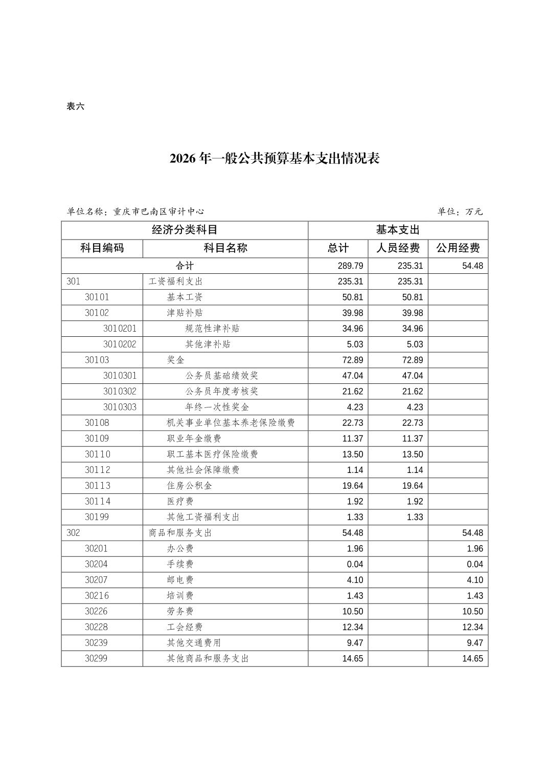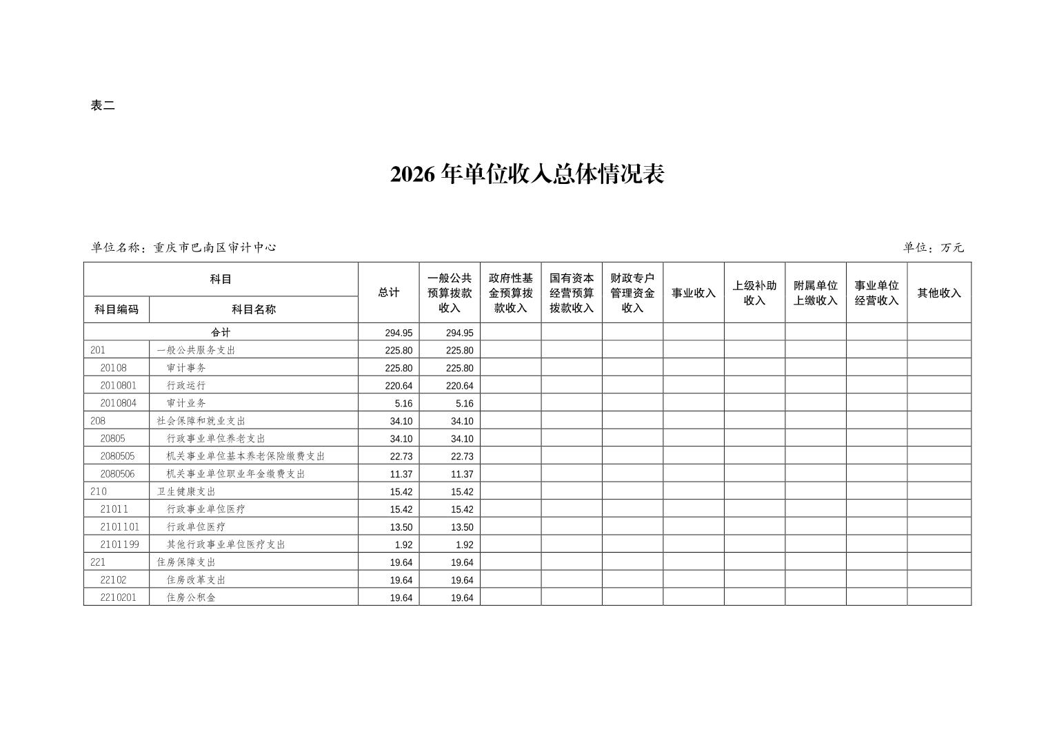 重庆市巴南区审计中心2026年单位预算情况说明