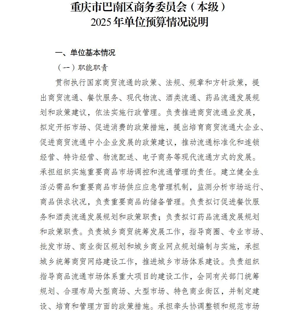 重庆市巴南区商务委员会(本级)2025年部门预算情况说明及附表
