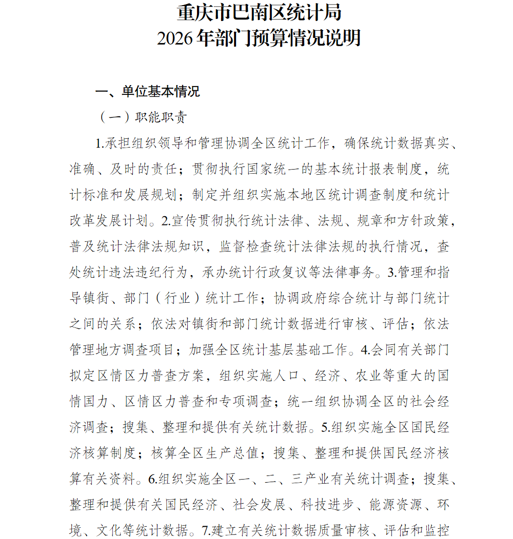 重庆市巴南区统计局2026年部门预算情况说明