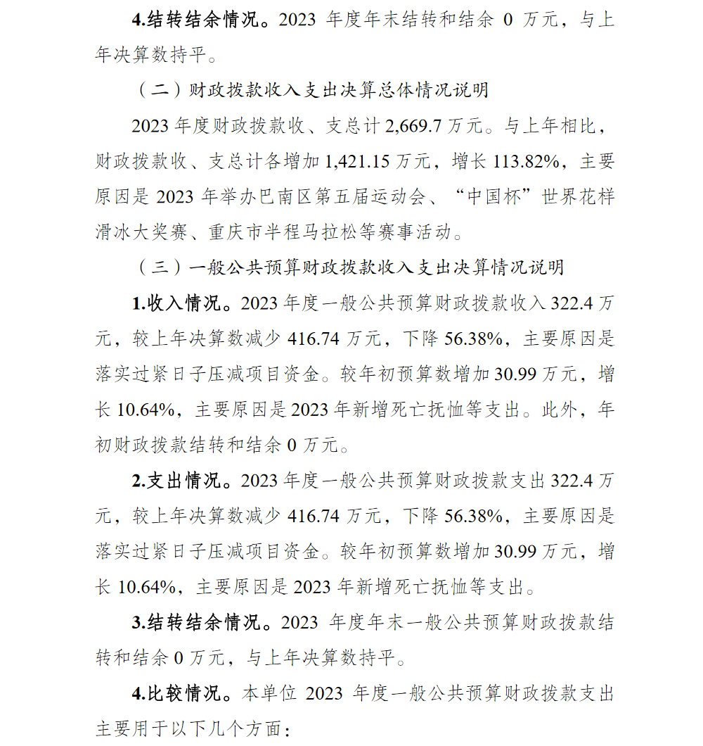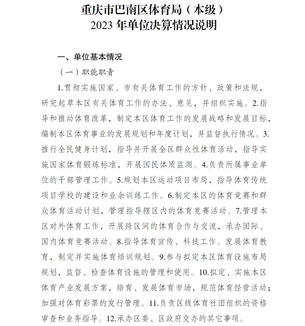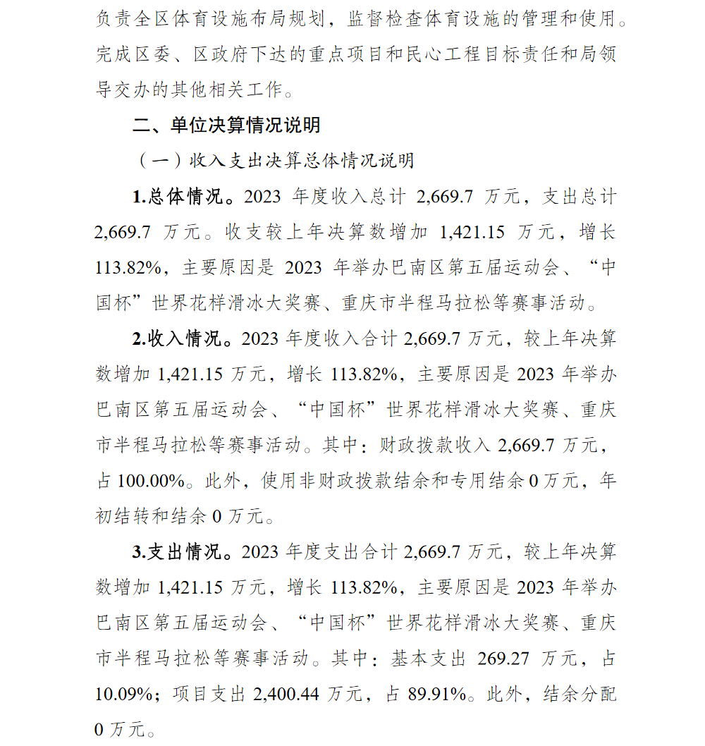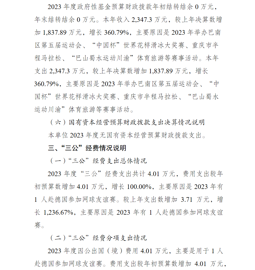 | [ 主题分类 ] | 体育 | [ 体裁分类 ] | 财政预算、决算 |