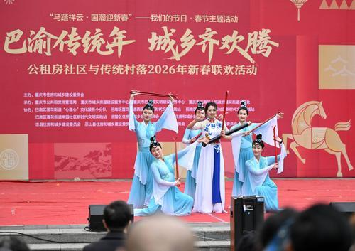 新春将至,巴渝大地年味渐浓。2月10日至11日,“巴渝传统年·城乡齐欢腾”活动先后走进巴南区云篆山水、九龙坡区民安华福等公租房社区。活动以“传统村落过大年”为主线,通过非遗展演、年俗展示、村落推介等形式,将乡土文化送进城市社区,让市民在家门口感受传统年味,在互动中走近传统村落。