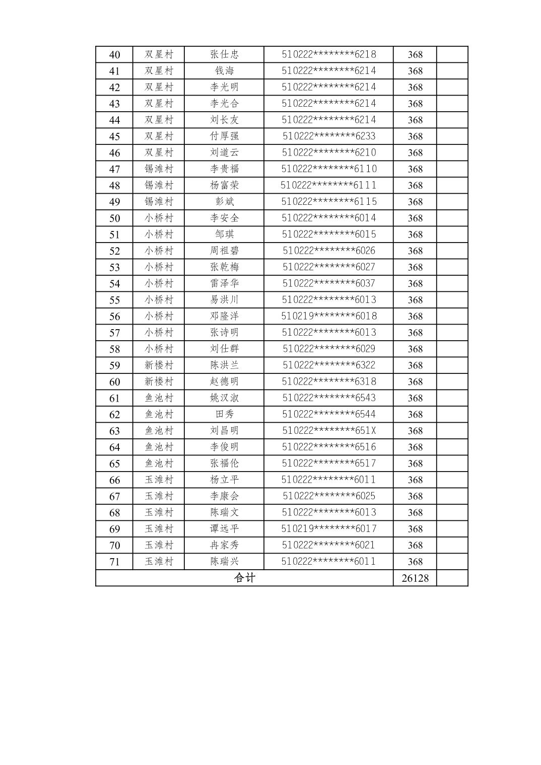 东温泉镇2025年衔接领域公益性岗位人员12月工资发放公示表