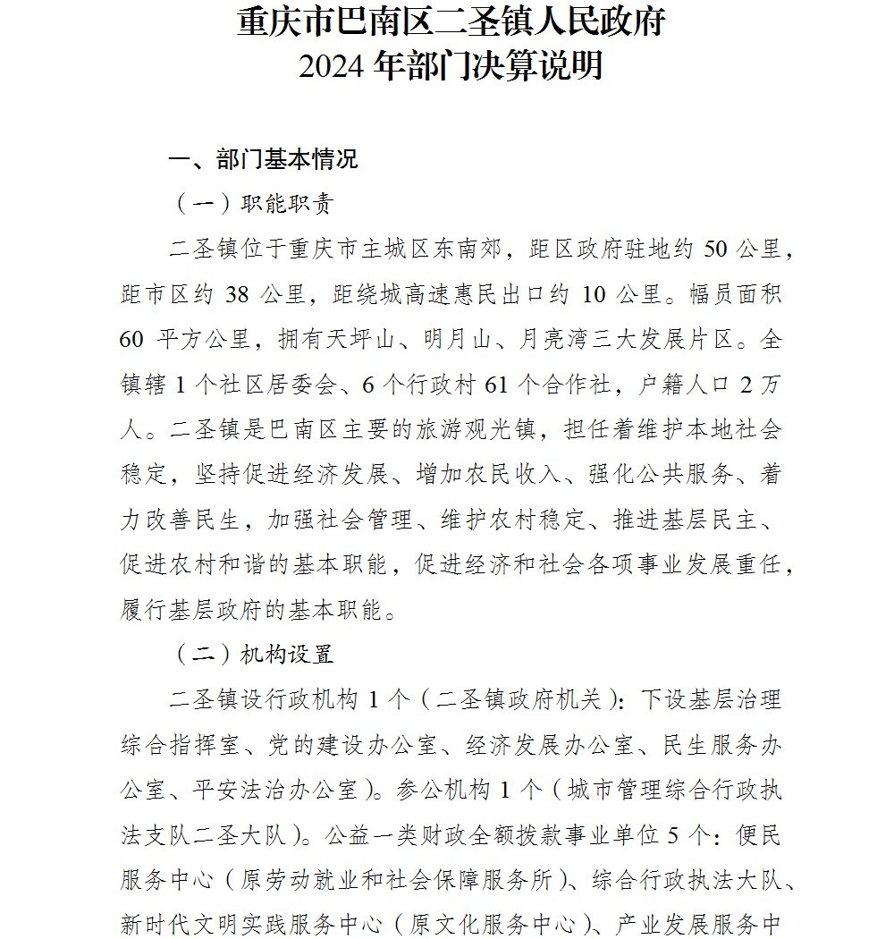 重庆市巴南区二圣镇人民政府2024年部门决算说明