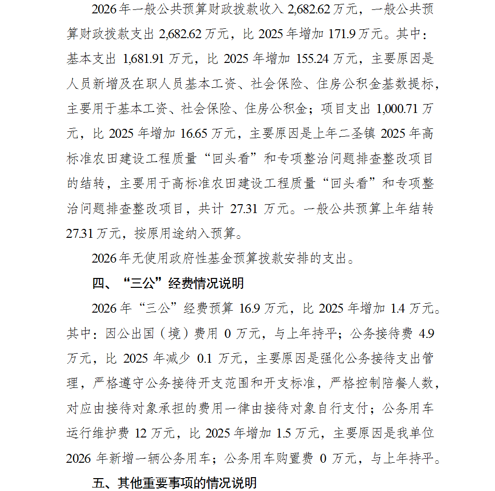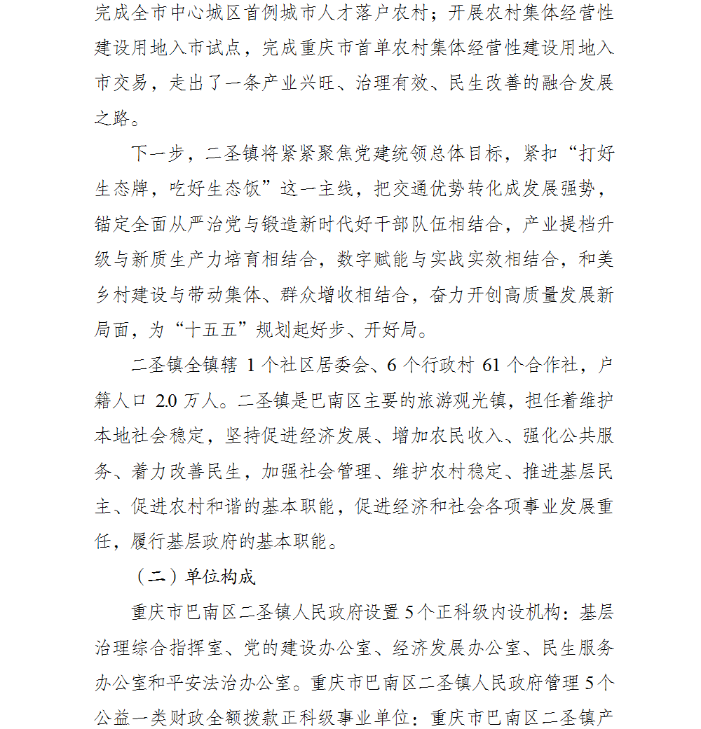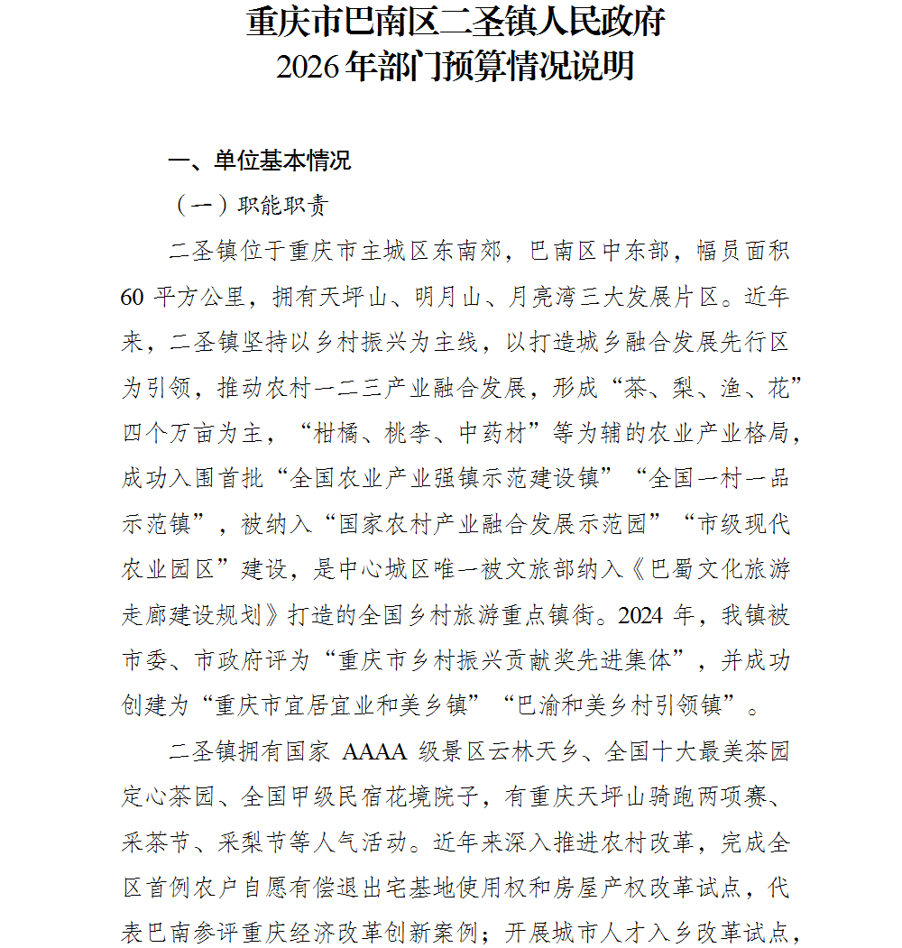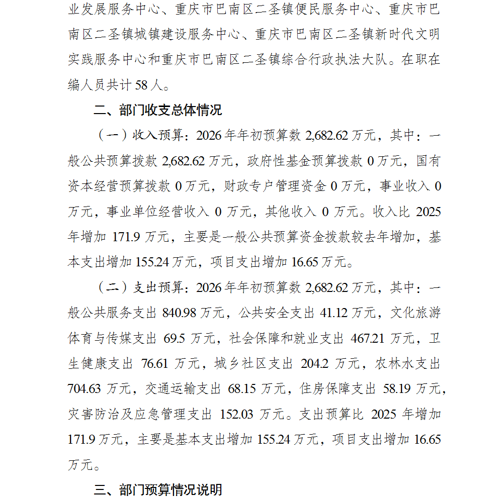 重庆市巴南区二圣镇人民政府2026年部门预算情况说明