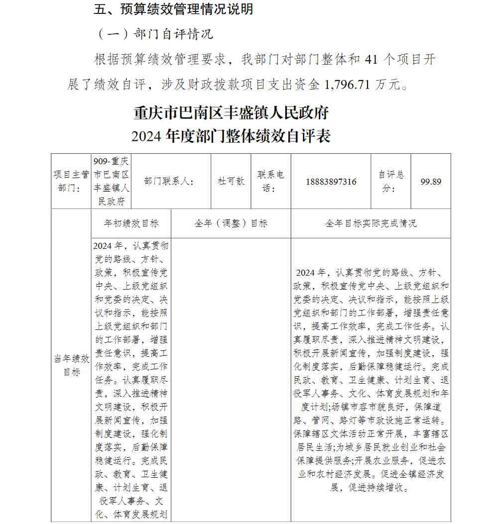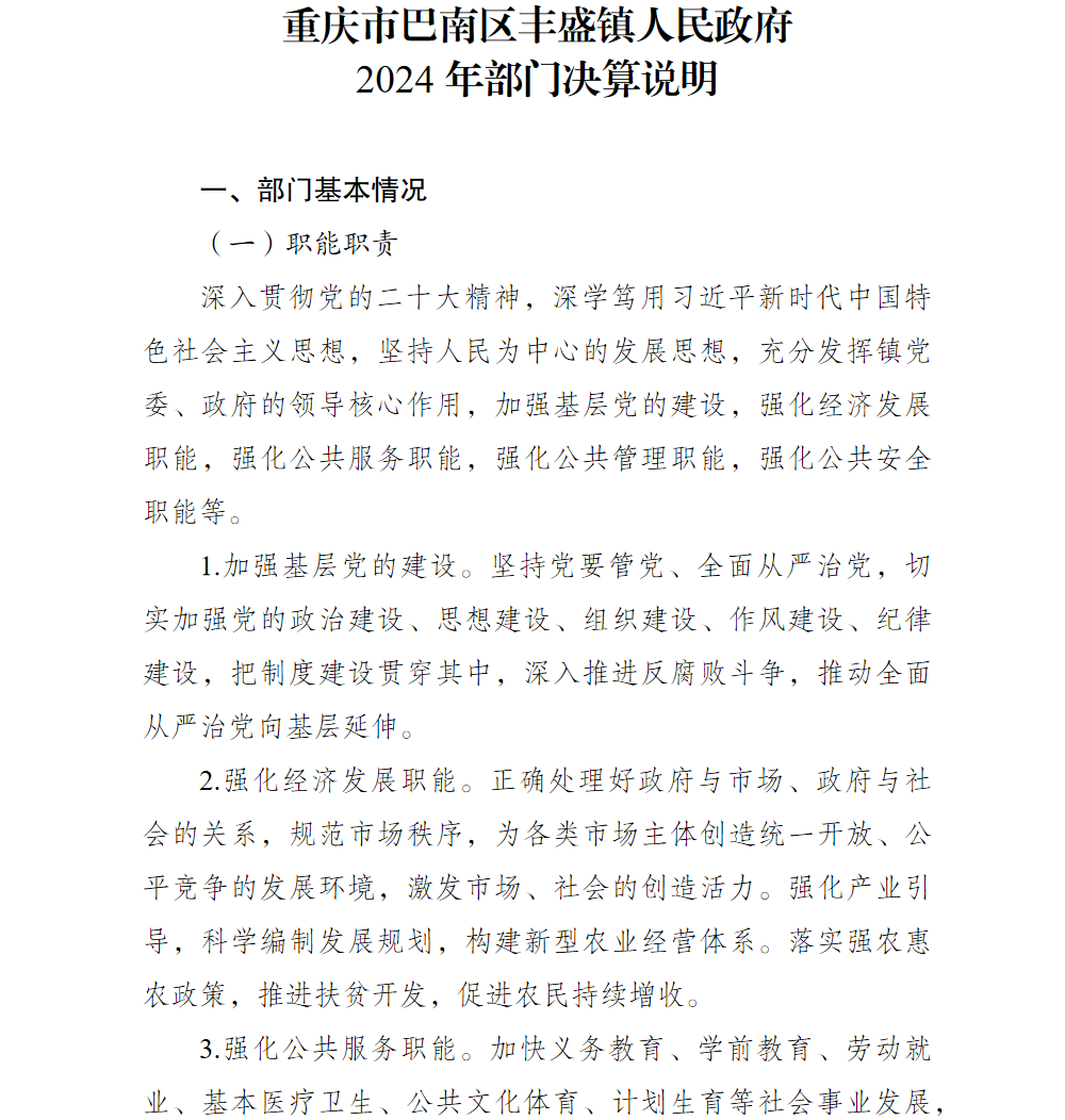 重庆市巴南区丰盛镇人民政府2024年部门决算公开