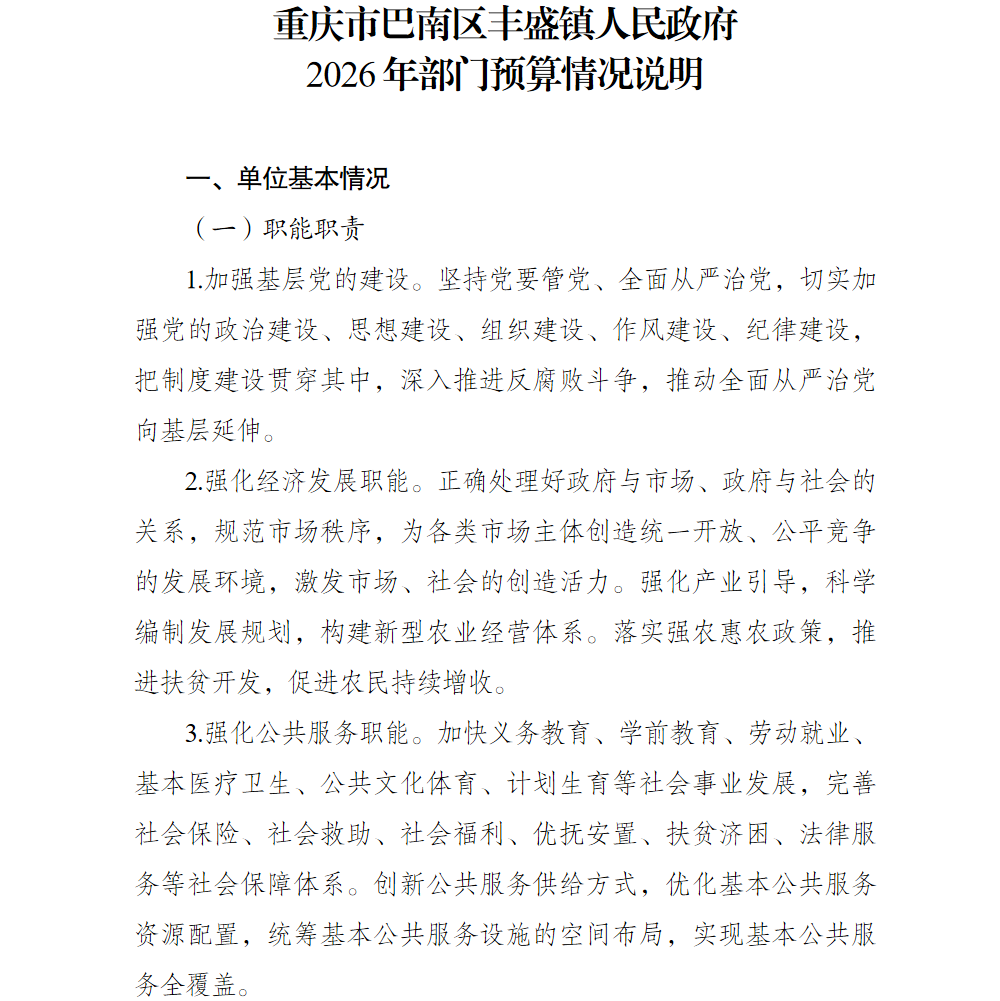 重庆市巴南区丰盛镇人民政府2026年单位预算公开
