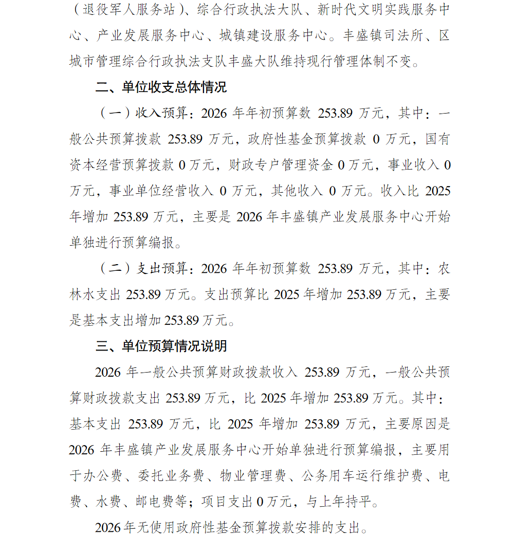 重庆市巴南区丰盛镇产业发展服务中心2026年单位预算公开