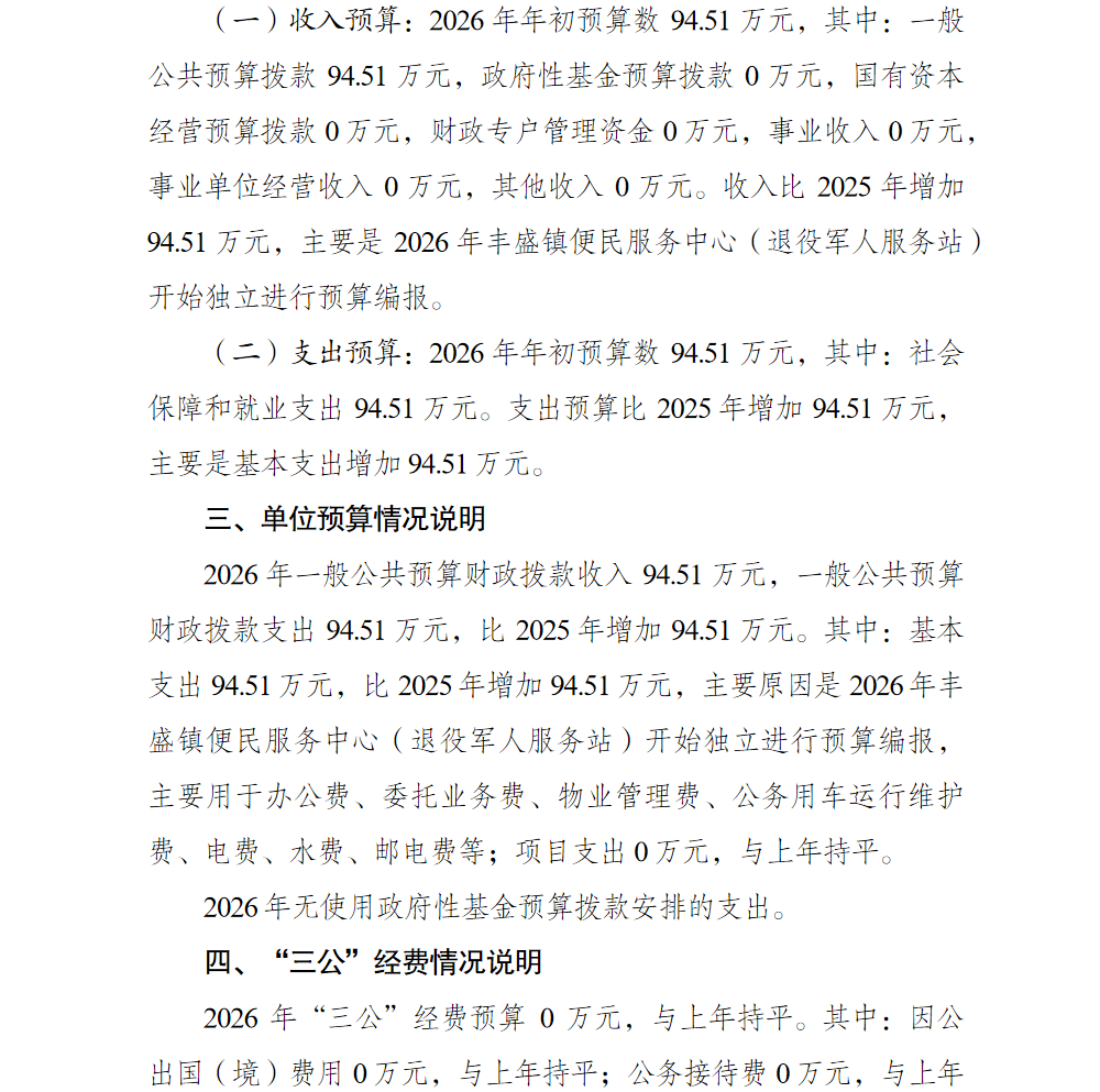 重庆市巴南区丰盛镇便民服务中心(退役军人服务站)2026年单位预算公开