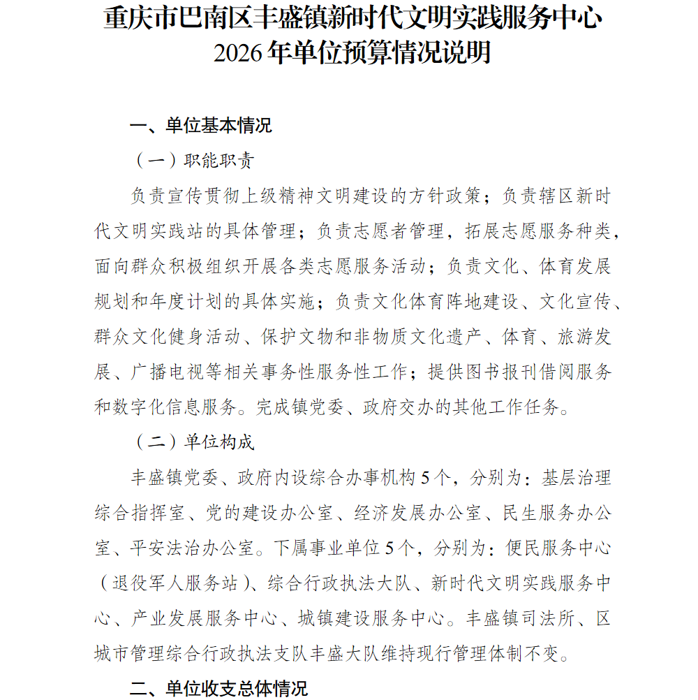 重庆市巴南区丰盛镇新时代文明实践服务中心2026年单位预算公开