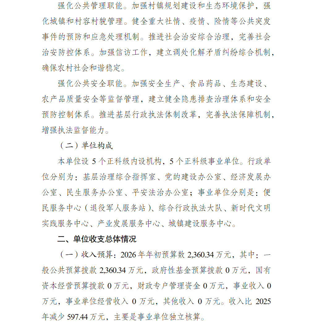 重庆市巴南区人民政府惠民街道办事处(本级)2026年单位预算情况说明
