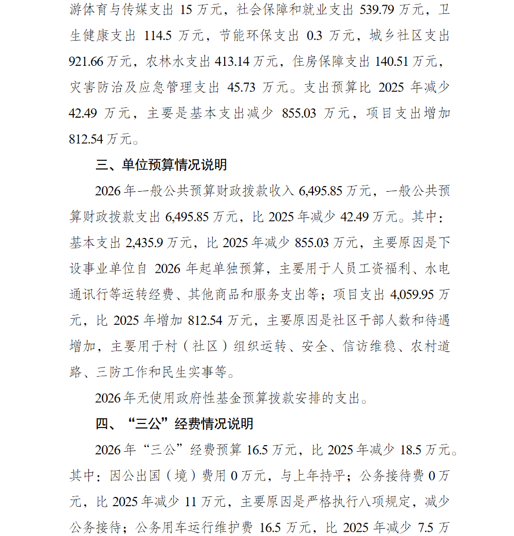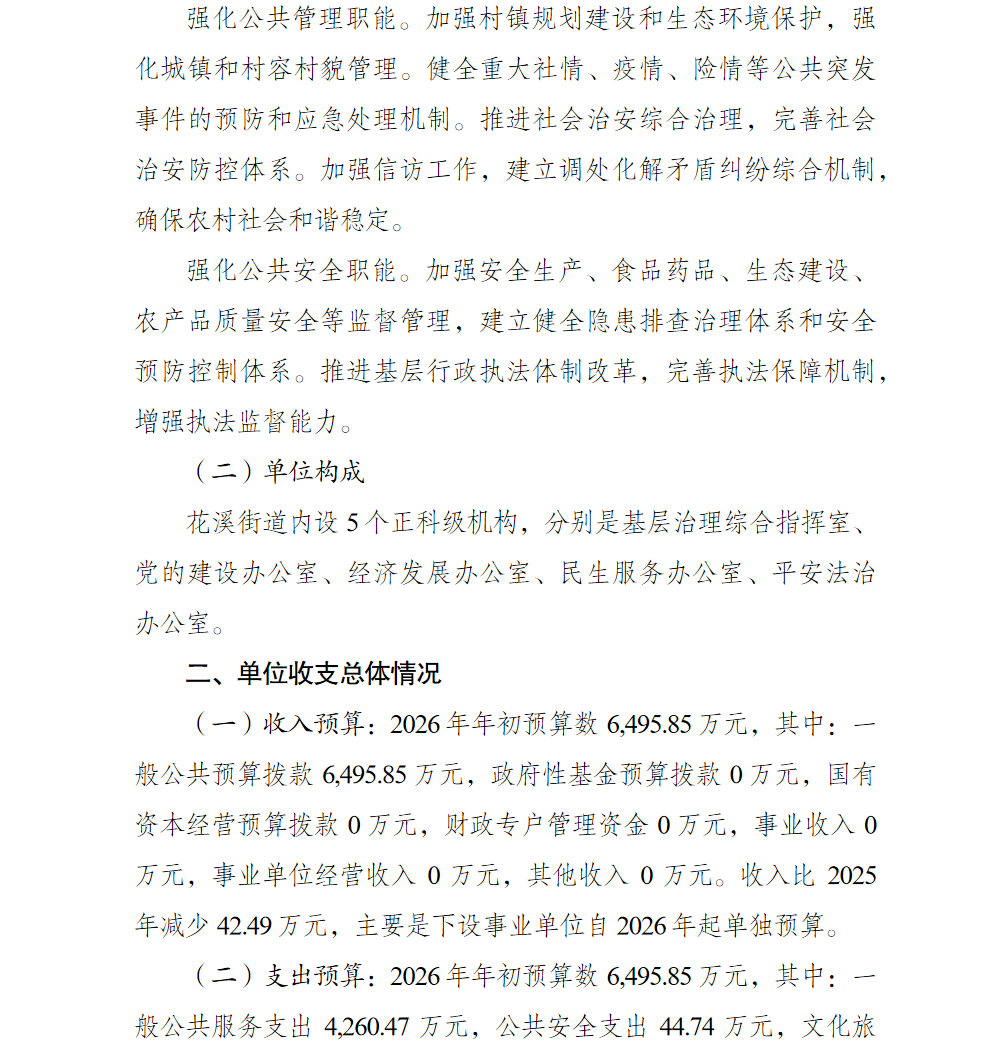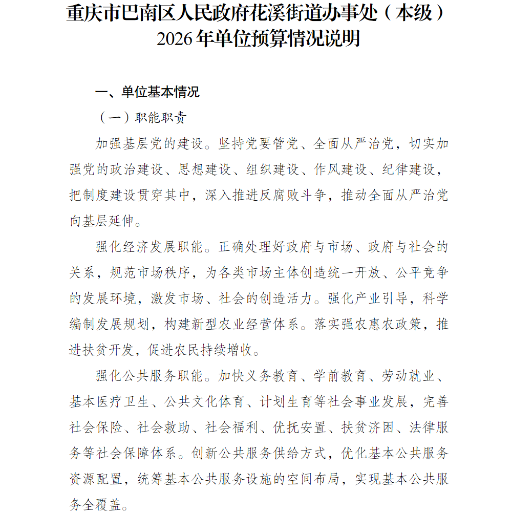 重庆市巴南区人民政府花溪街道办事处(本级)2026年单位预算情况说明