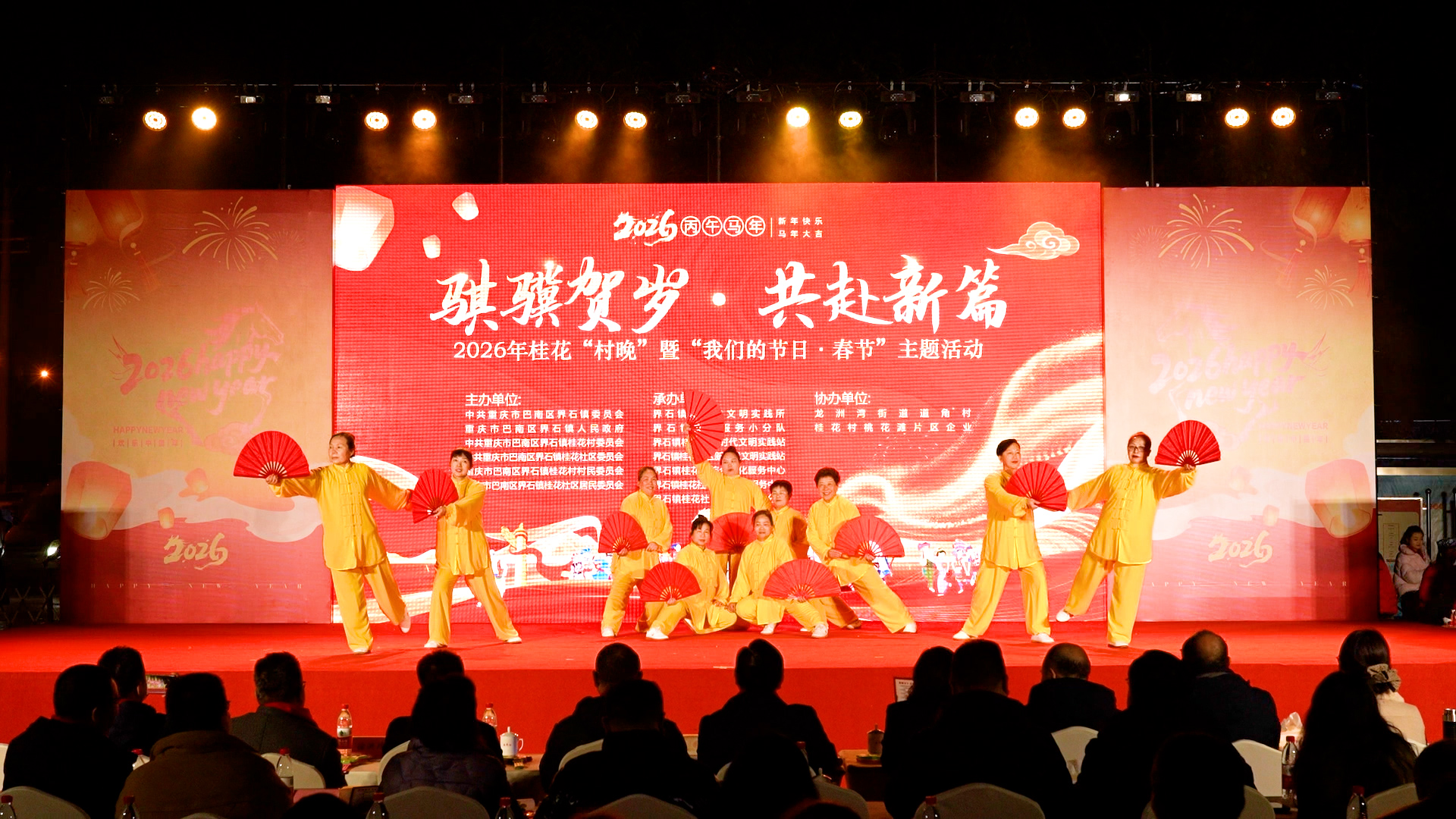 近日,巴南区界石镇桂花村灯火璀璨、人声鼎沸,“骐骥贺岁・共赴新篇 2026年桂花‘村晚’暨‘我们的节日・春节’主题活动”在界石镇公共服务中心广场热闹开演。辖区男女老少欢聚一堂,以自编自演的文艺节目、趣味互动游戏共同奏响新春序曲,沉浸式感受浓浓的年味与邻里温情。