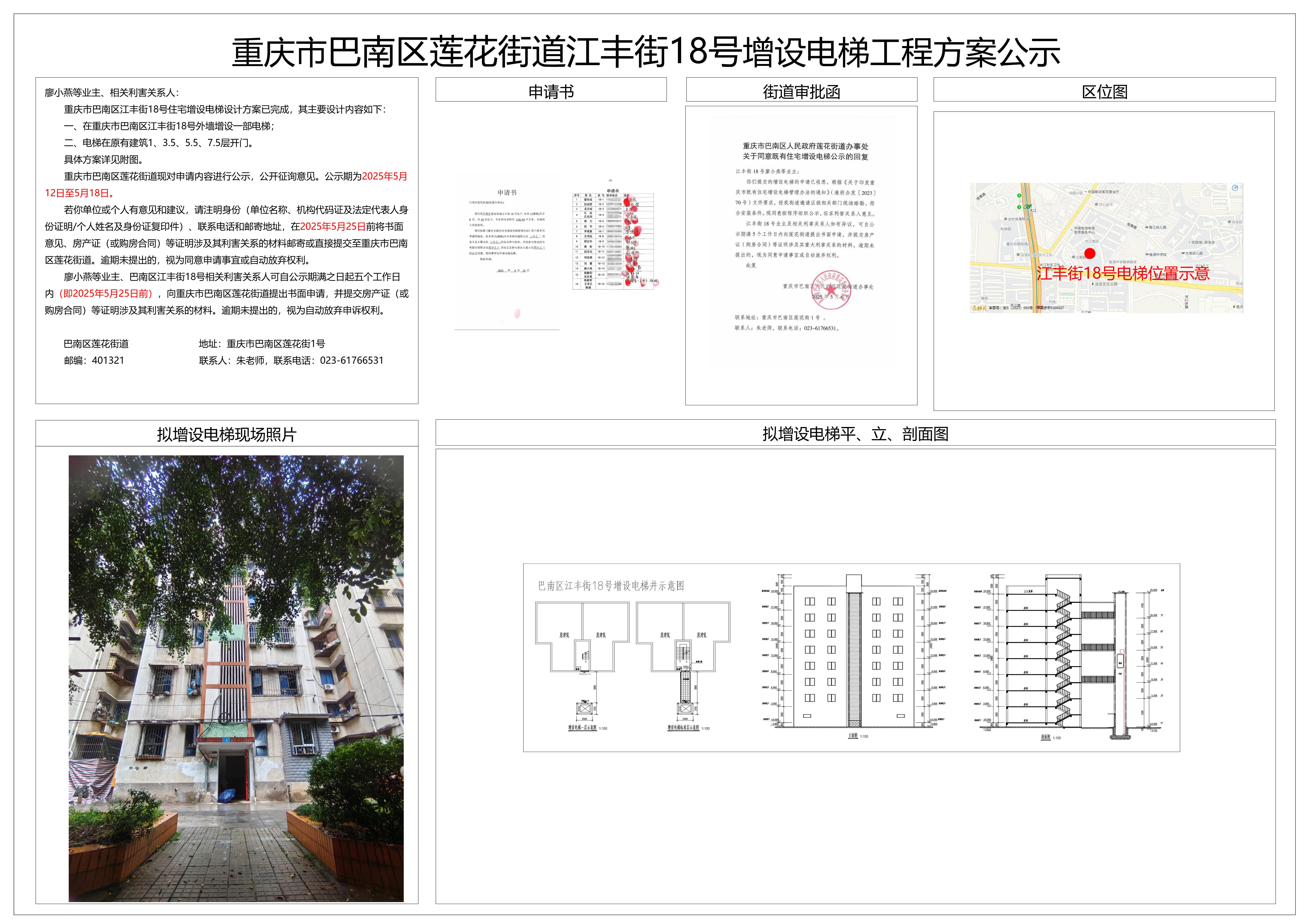 重庆市巴南区莲花街道江丰街18号增设电梯工程方案公示