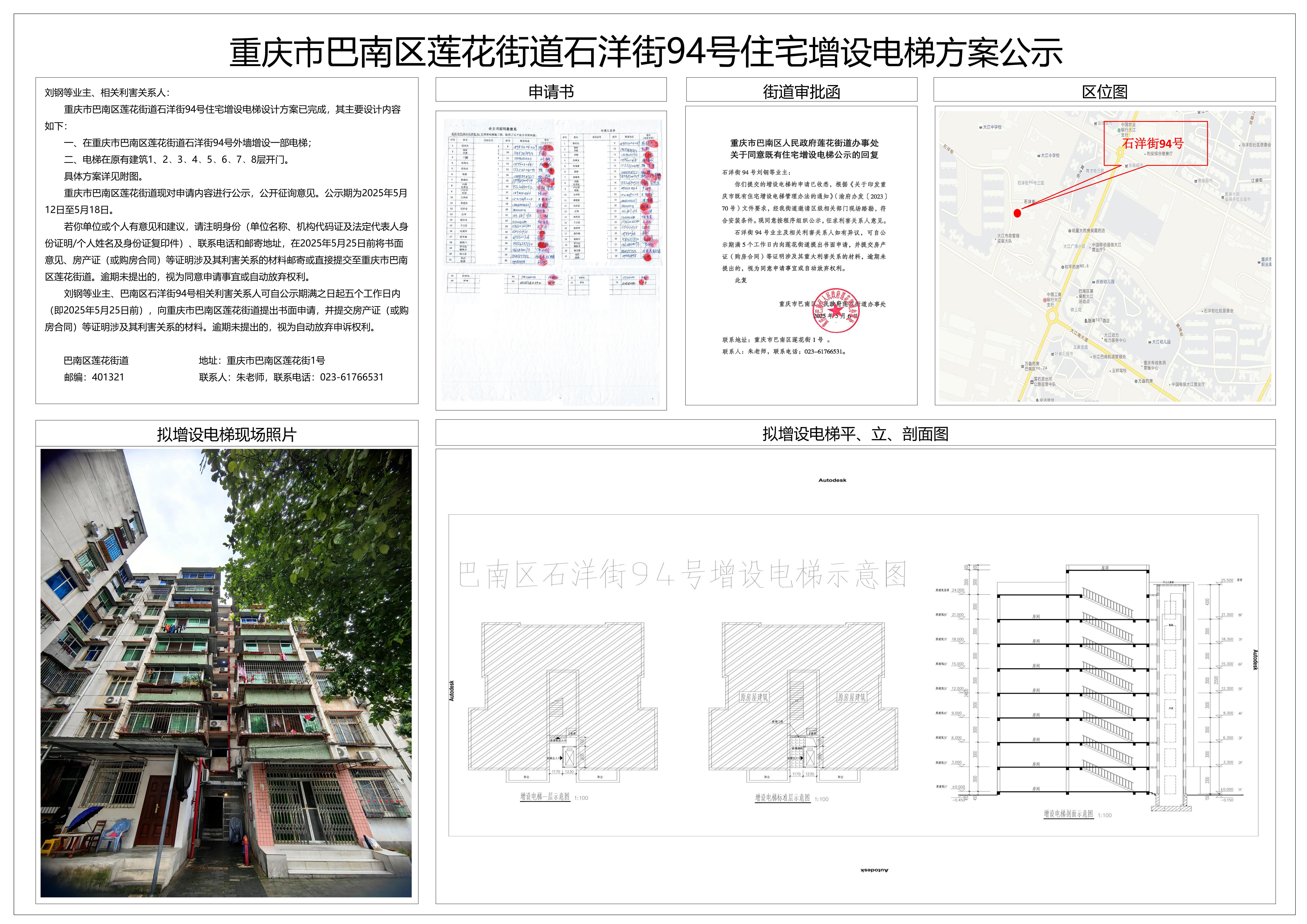 重庆市巴南区莲花街道石洋街94号住宅增设电梯方案公示