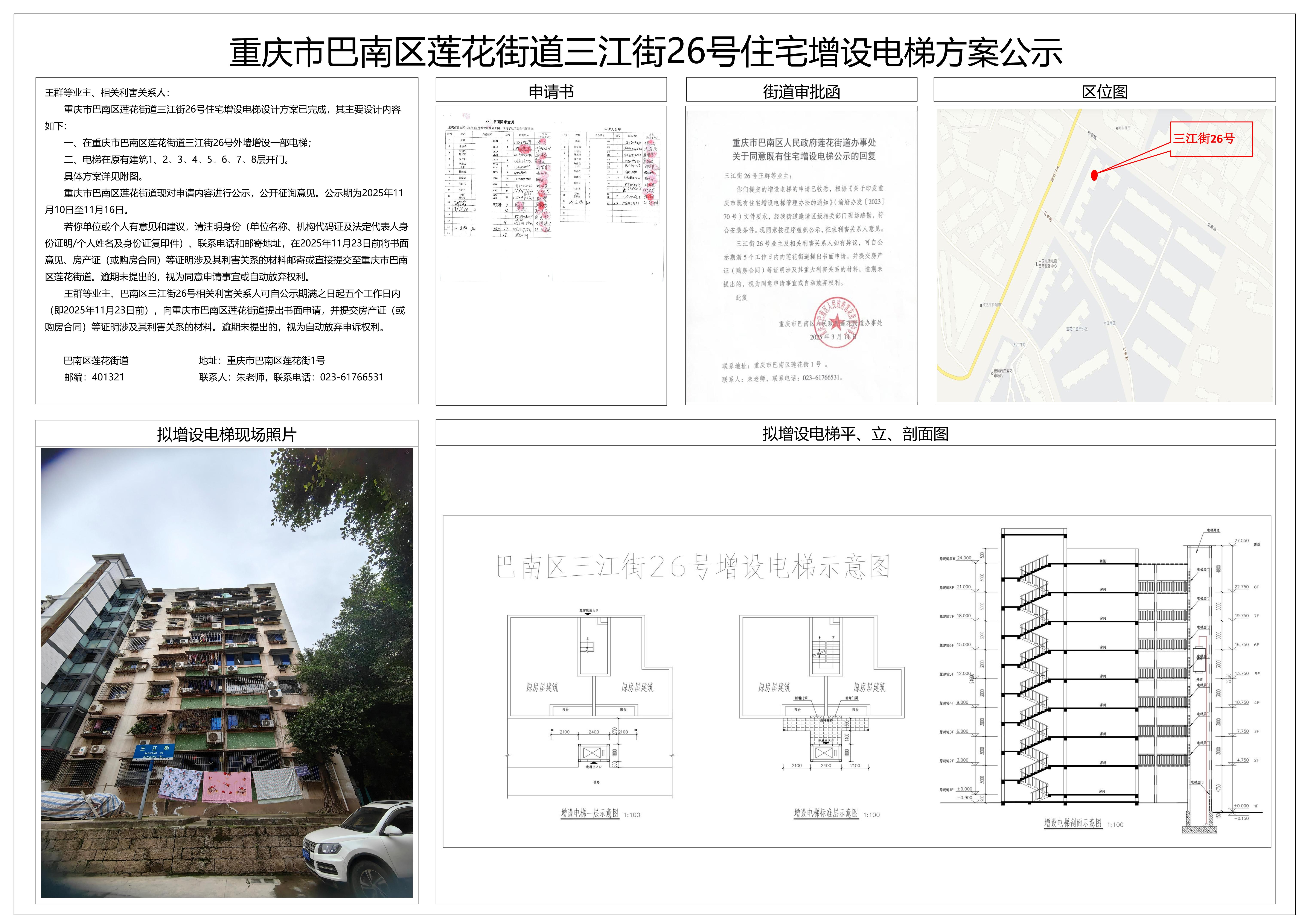 重庆市巴南区莲花街道三江街26号住宅增设电梯方案公示