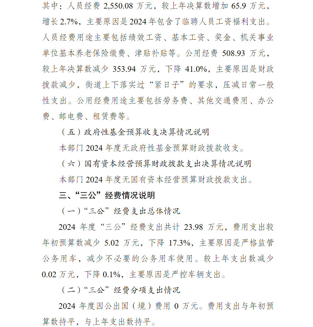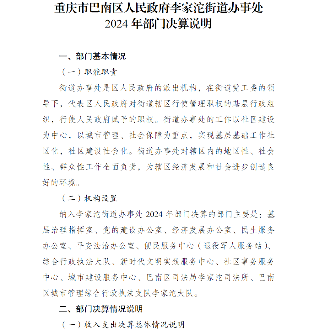 重庆市巴南区人民政府李家沱街道办事处2024年部门决算说明及附表