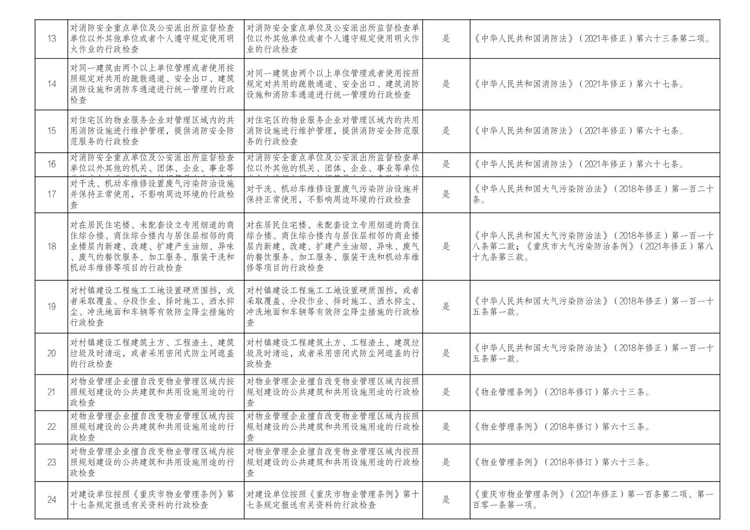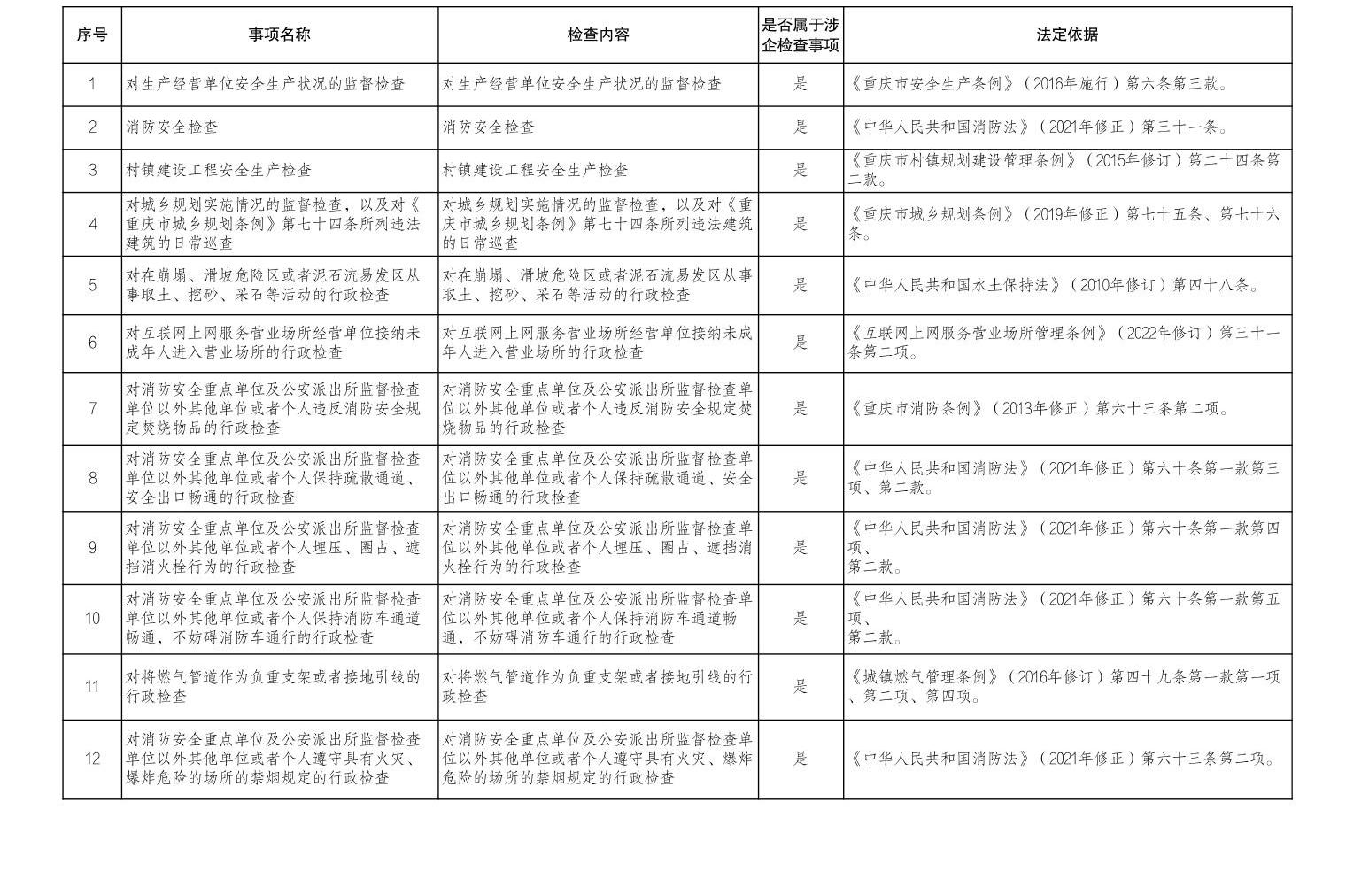 李家沱街道涉企行政检查事项清单