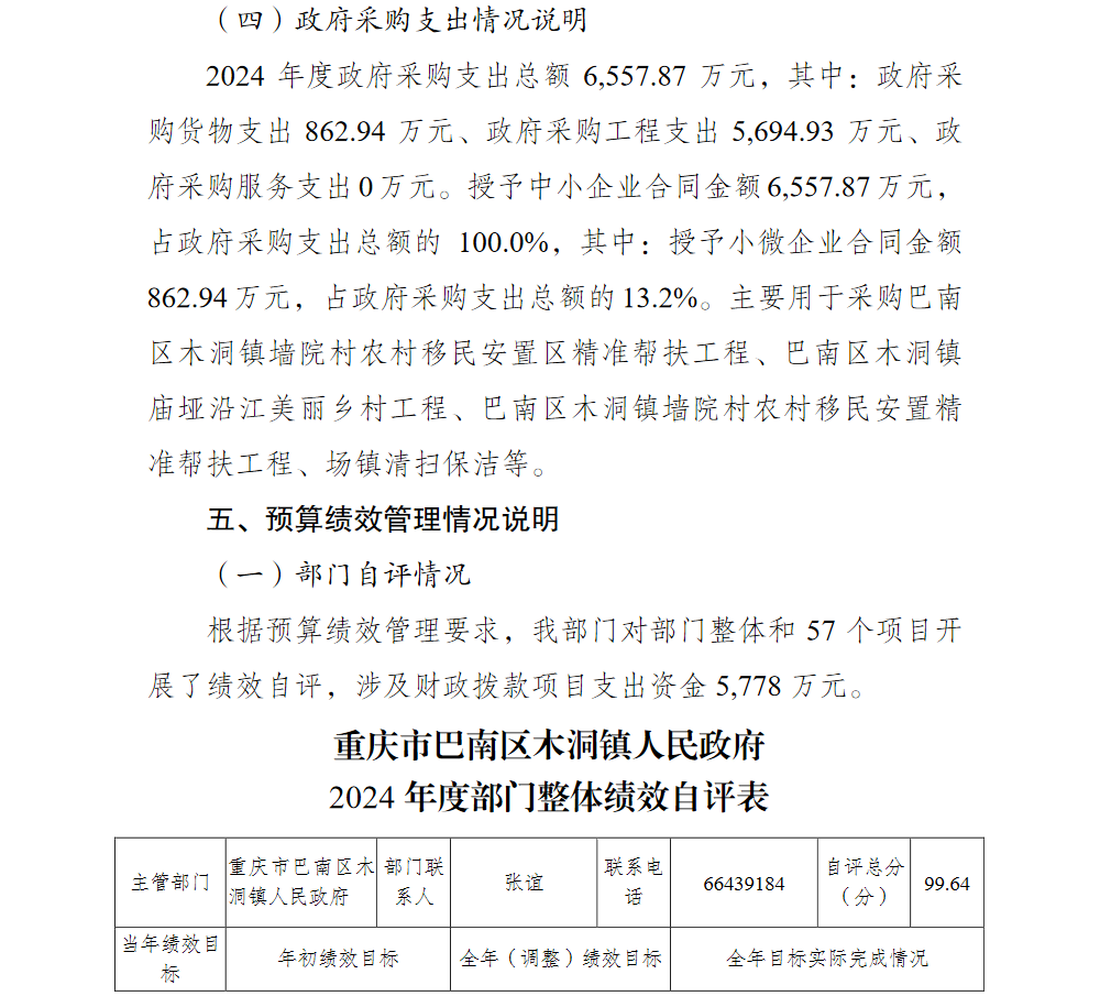 重庆市巴南区木洞镇人民政府2024年部门决算说明