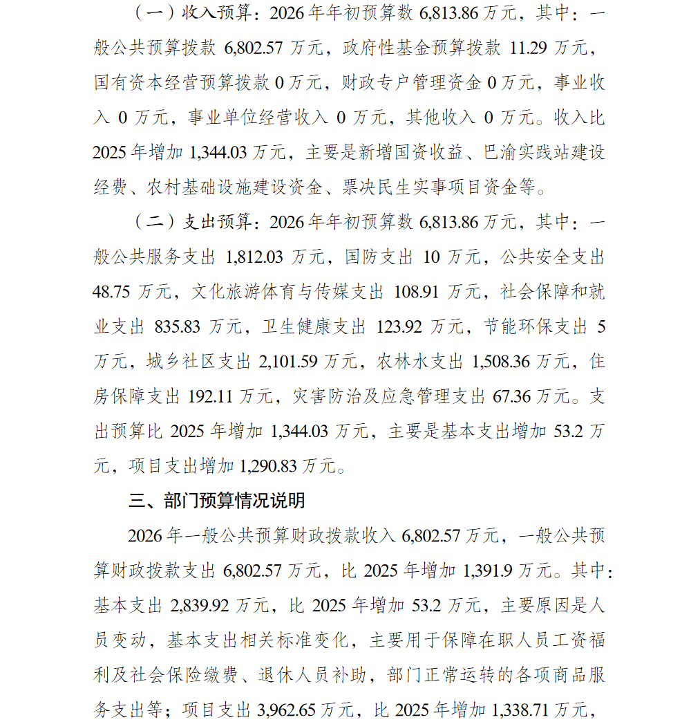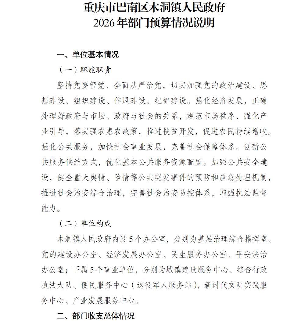 重庆市巴南区木洞镇人民政府2026年部门预算情况说明