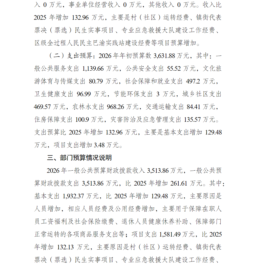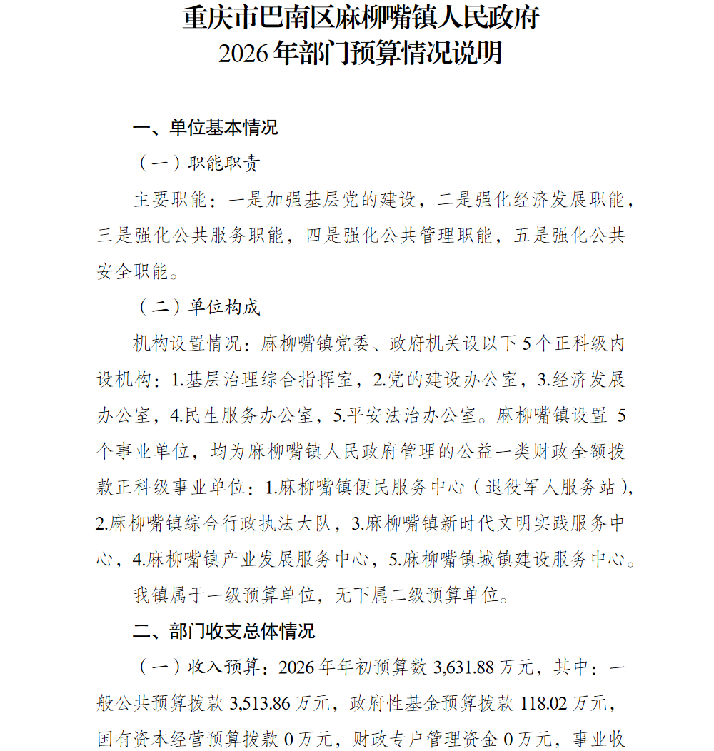 重庆市巴南区麻柳嘴镇人民政府2026年部门预算情况说明及附表