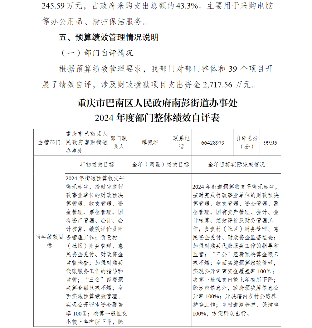 重庆市巴南区人民政府南彭街道办事处2024年部门决算说明