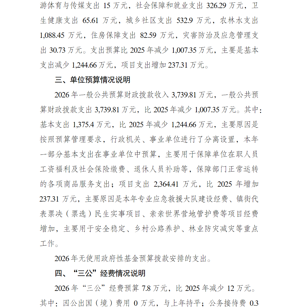 重庆市巴南区人民政府南彭街道办事处(本级)2026年单位预算情况说明
