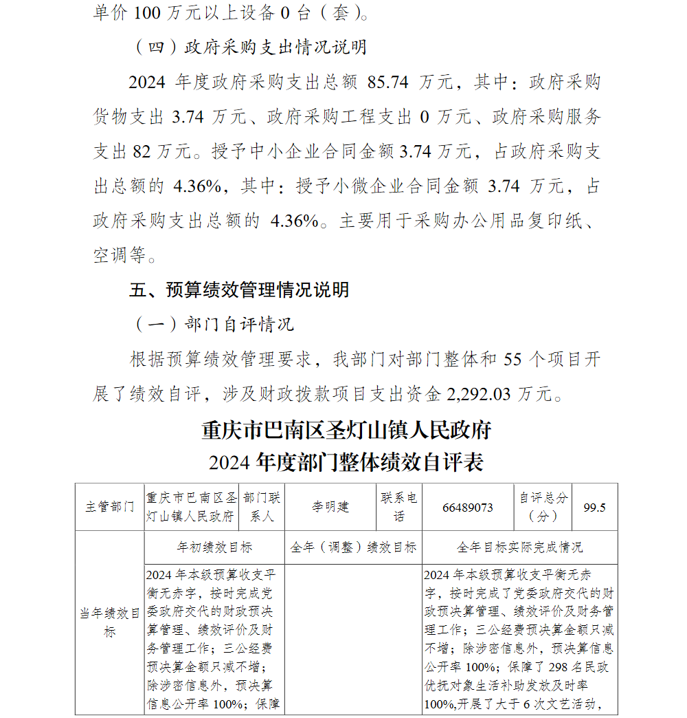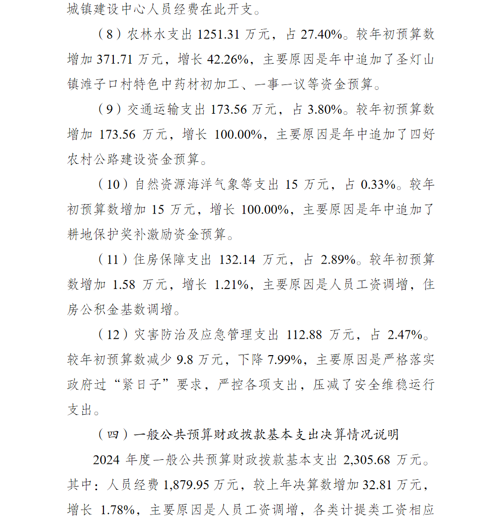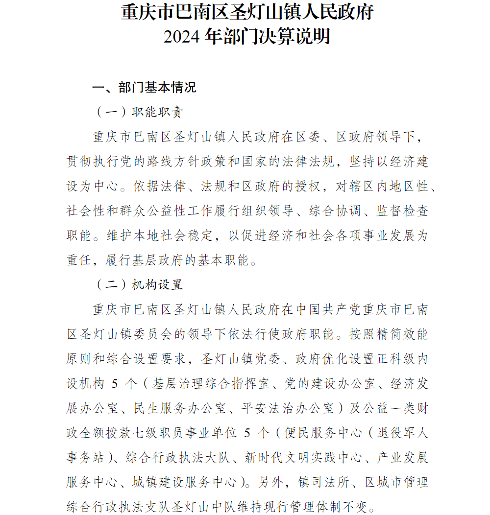 重庆市巴南区圣灯山镇人民政府2024年部门决算说明