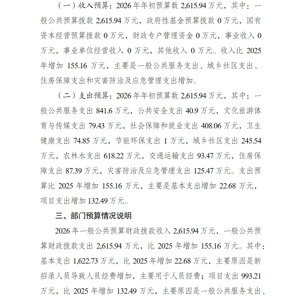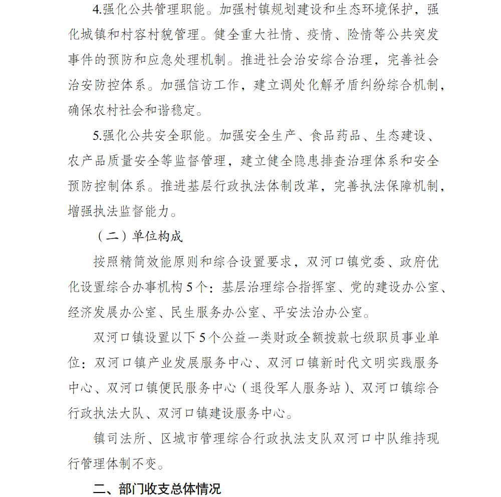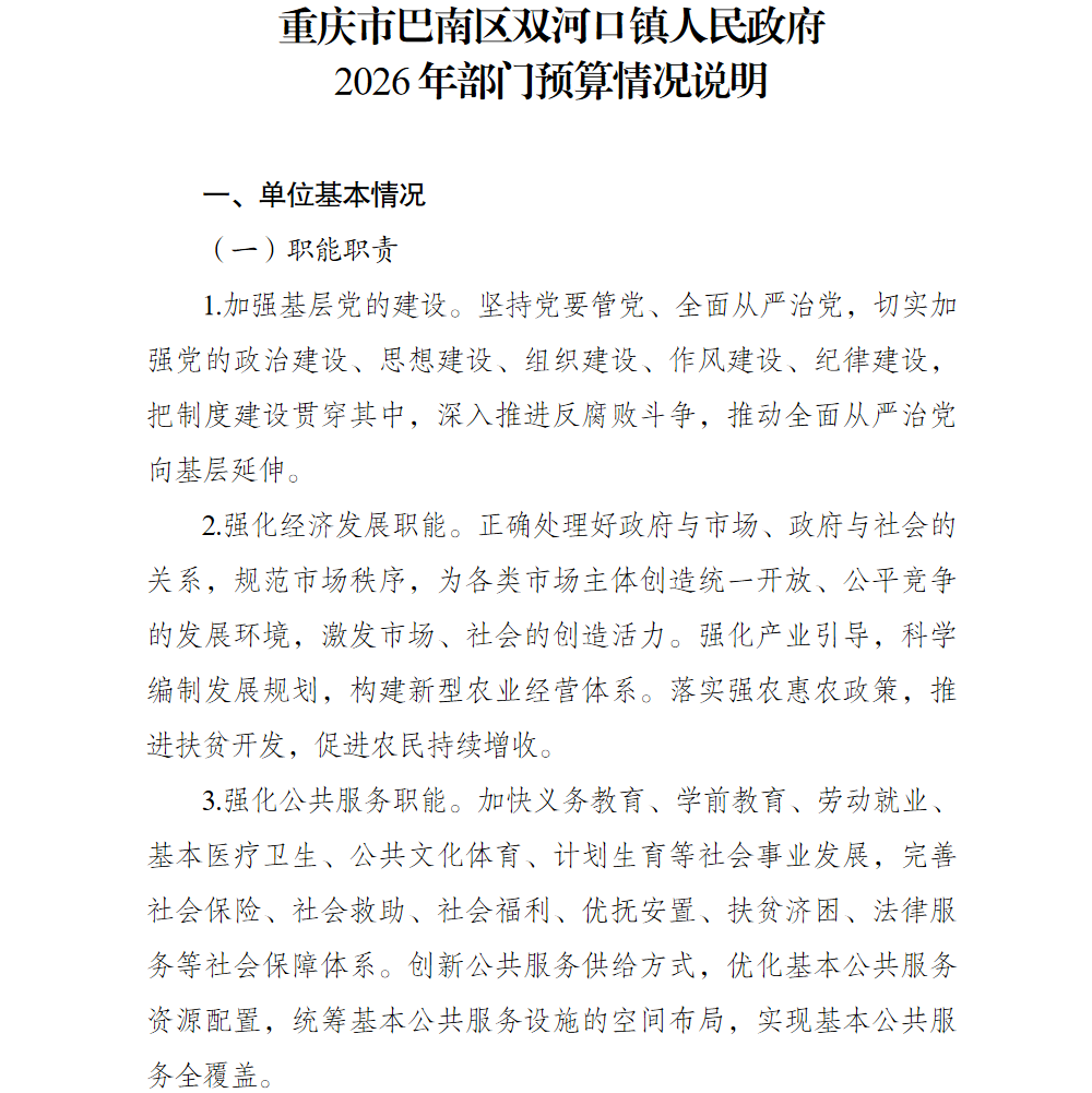 重庆市巴南区双河口镇人民政府2026年部门预算情况说明