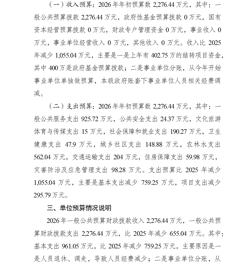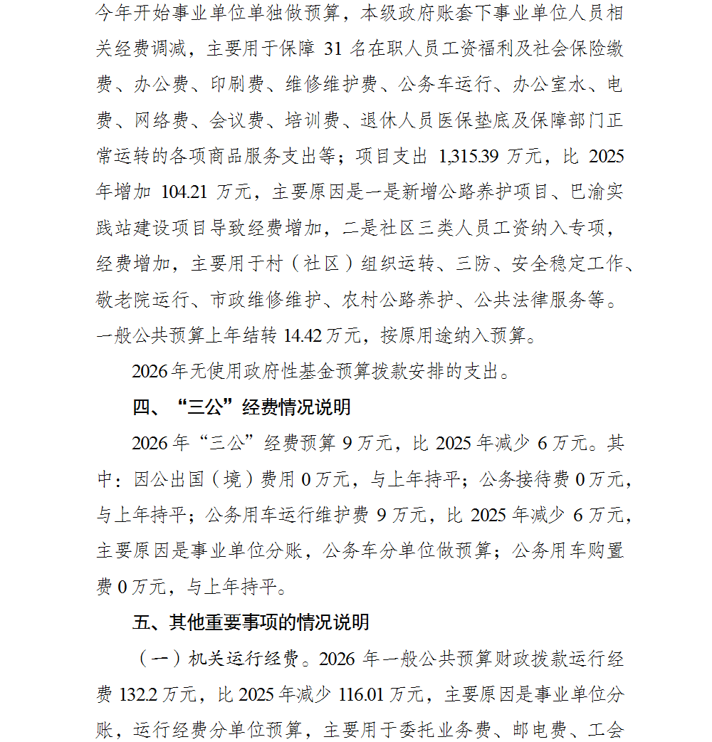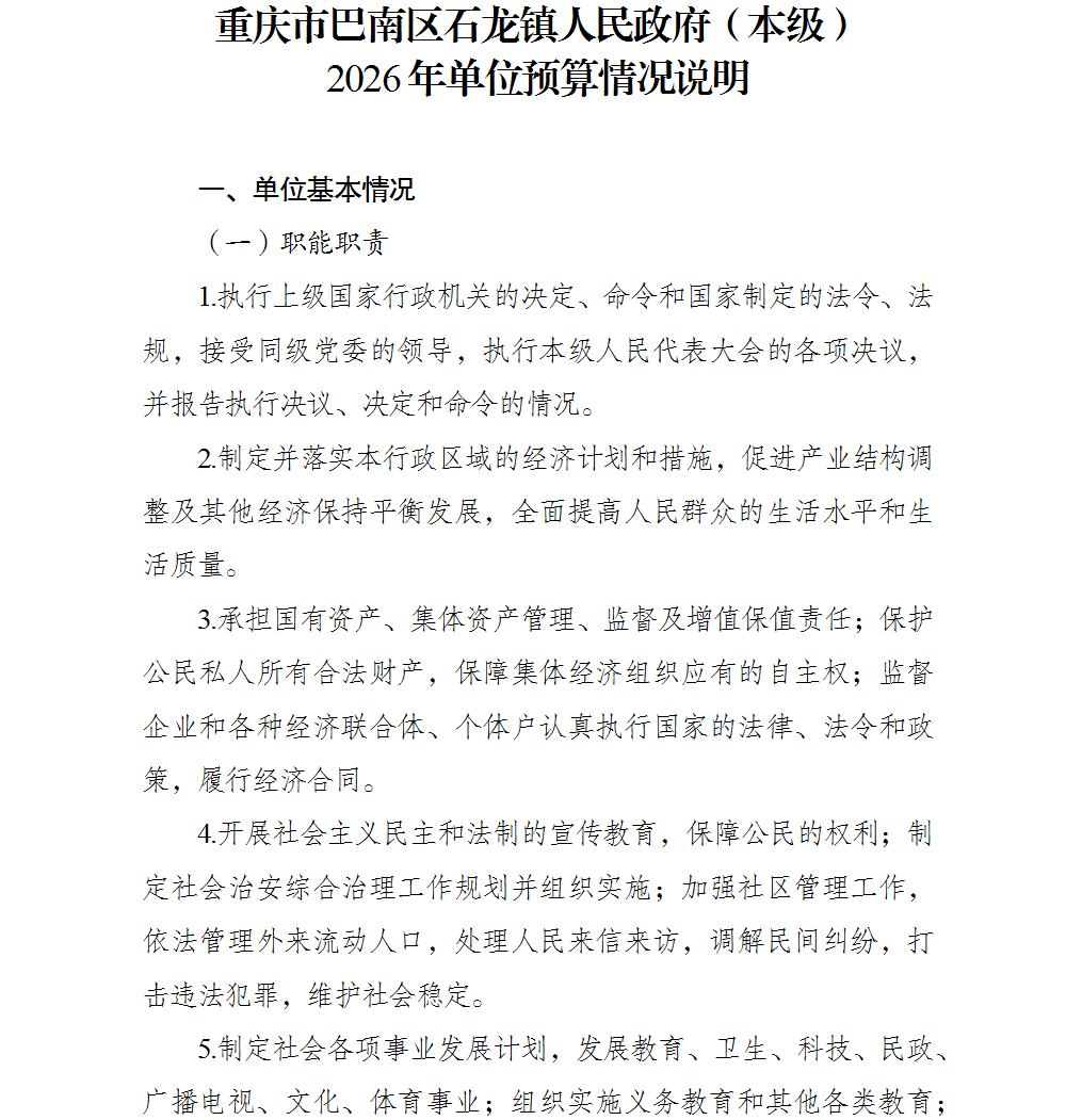重庆市巴南区石龙镇人民政府(本级)2026年部门预算情况说明