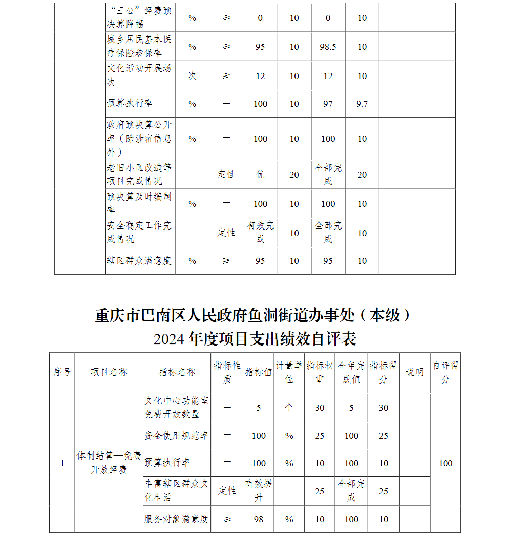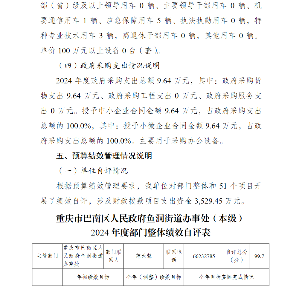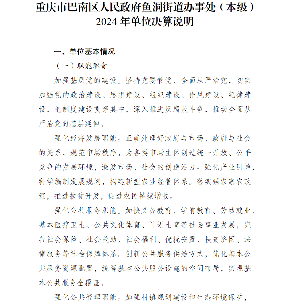 重庆市巴南区人民政府鱼洞街道办事处(本级)2024年单位决算说明及附表