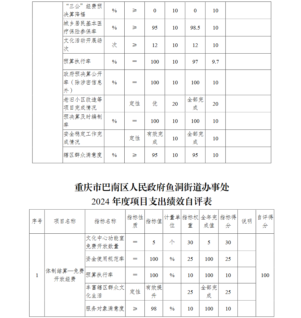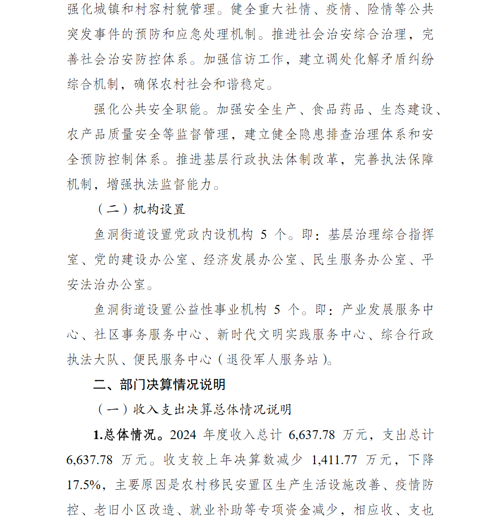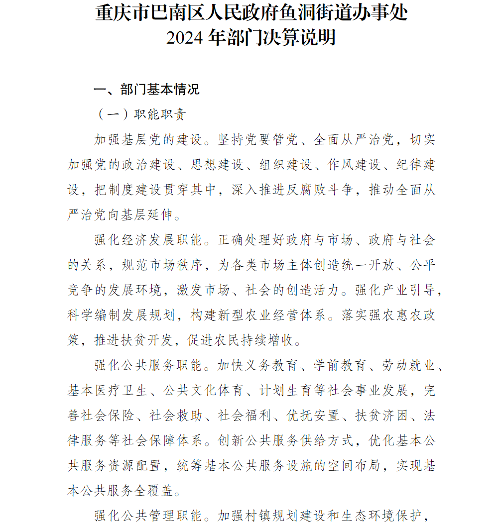 重庆市巴南区人民政府鱼洞街道办事处2024年部门决算说明及附表