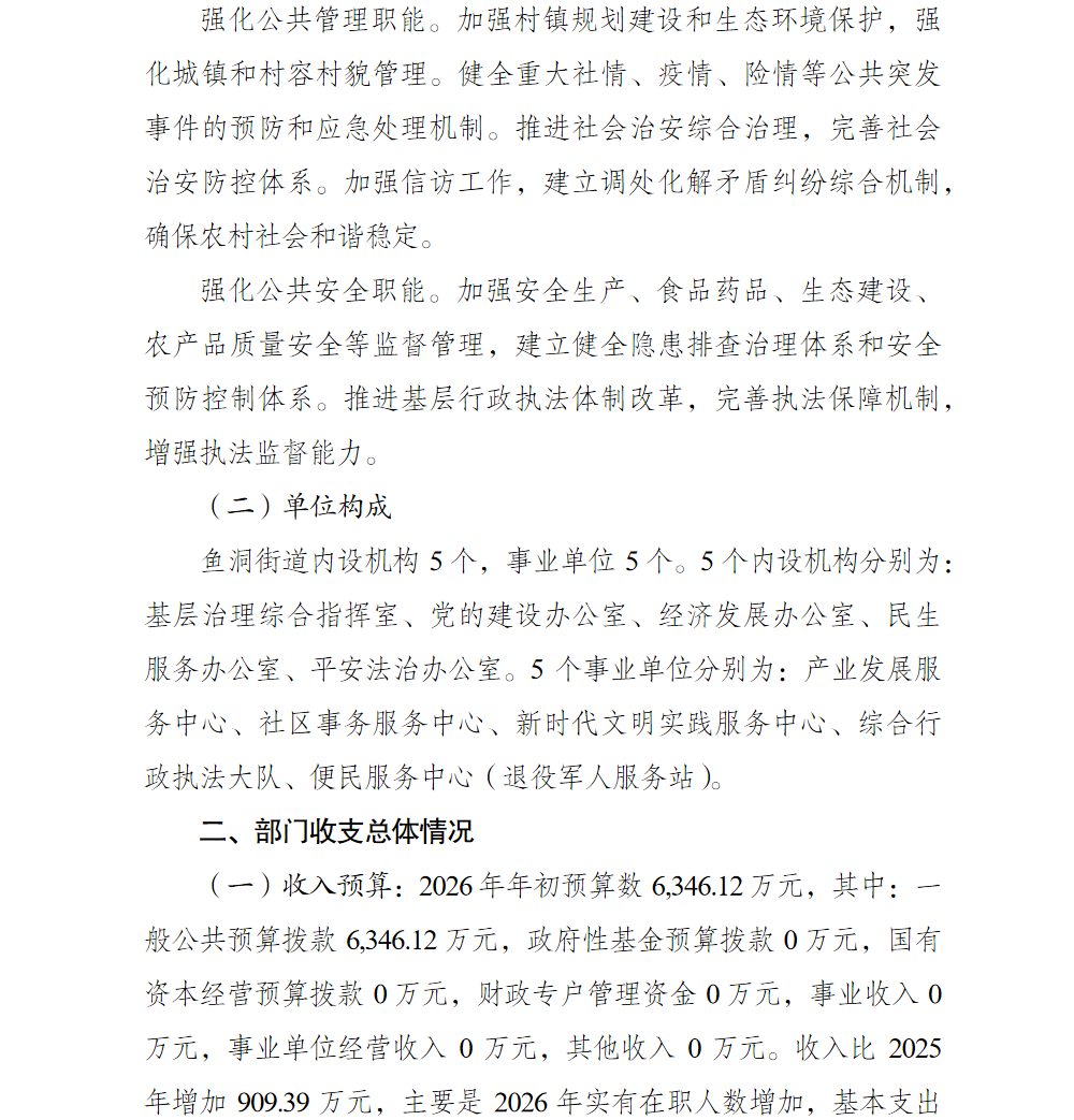 重庆市巴南区人民政府鱼洞街道办事处2026年部门预算情况说明