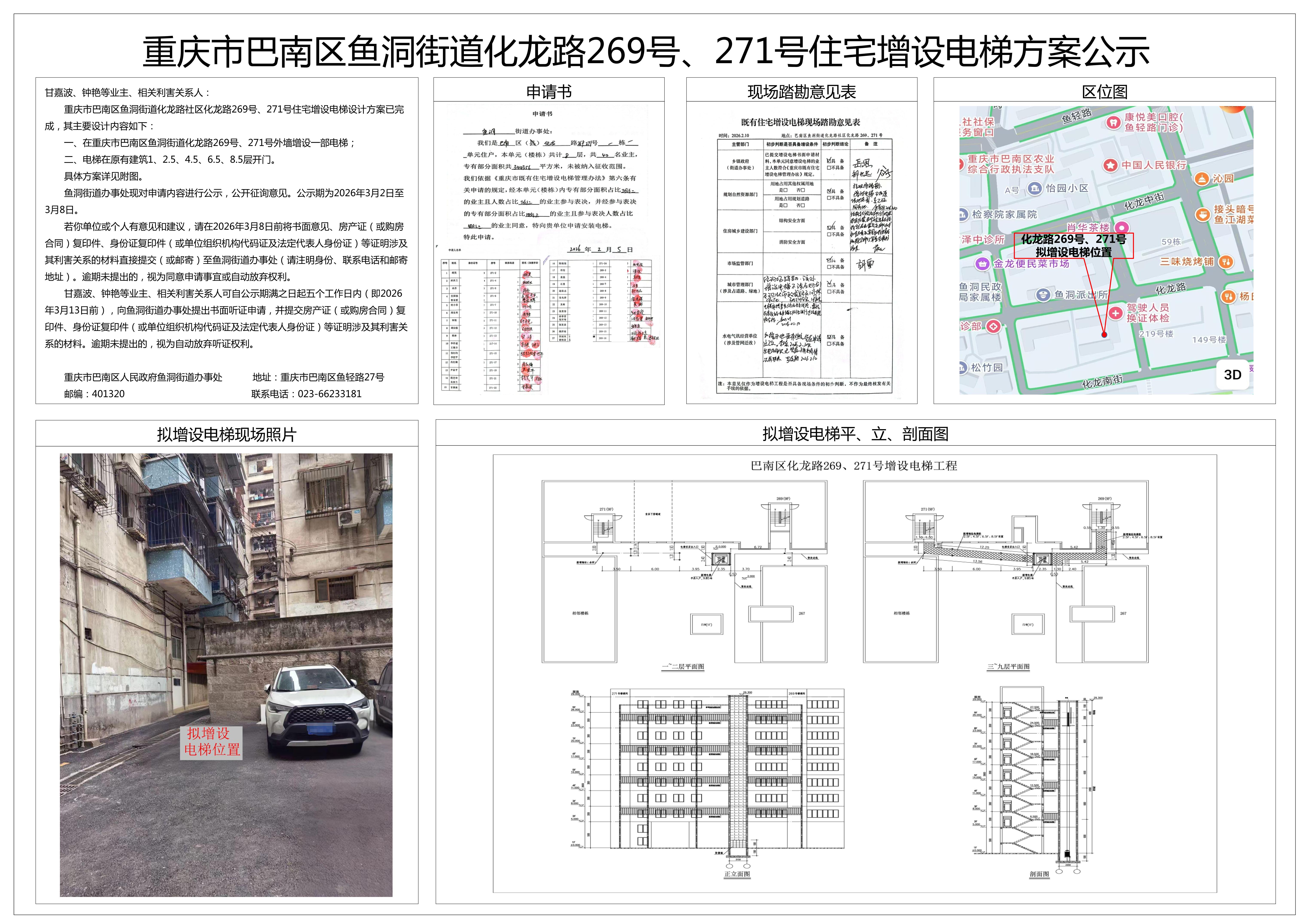 重庆市巴南区鱼洞街道化龙路269号、271号住宅增设电梯方案公示(1)