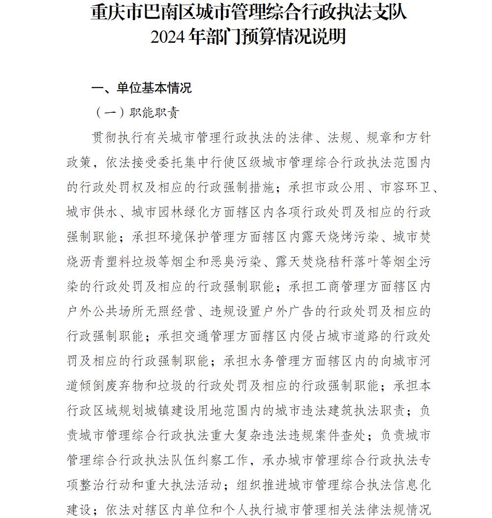 重庆市巴南区城市管理综合行政执法支队2024年部门预算情况说明