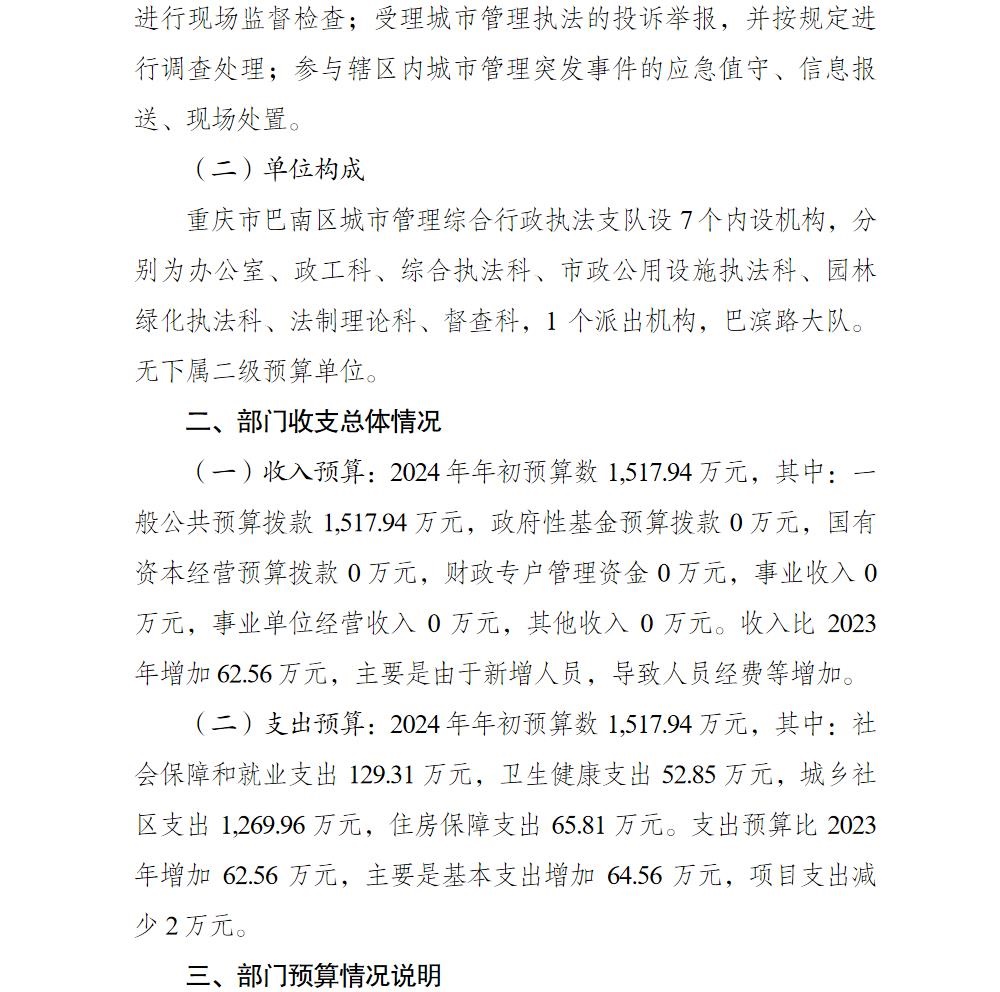 重庆市巴南区城市管理综合行政执法支队2024年部门预算情况说明及附表.pdf