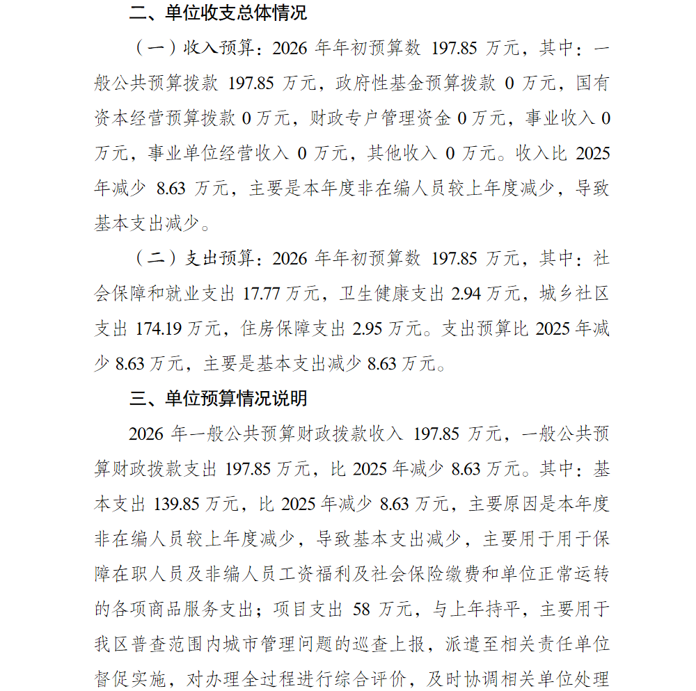 重庆市巴南区市政管理指挥中心2026年单位预算情况说明