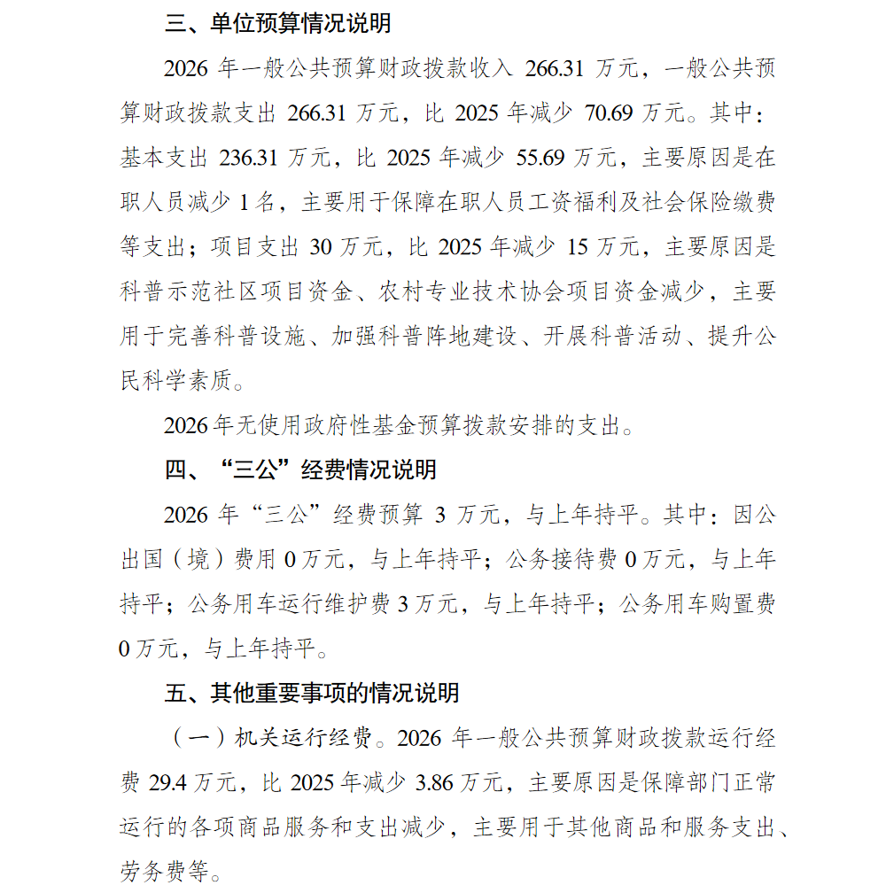 重庆市巴南区科学技术协会(本级)2026年单位预算情况说明及附表