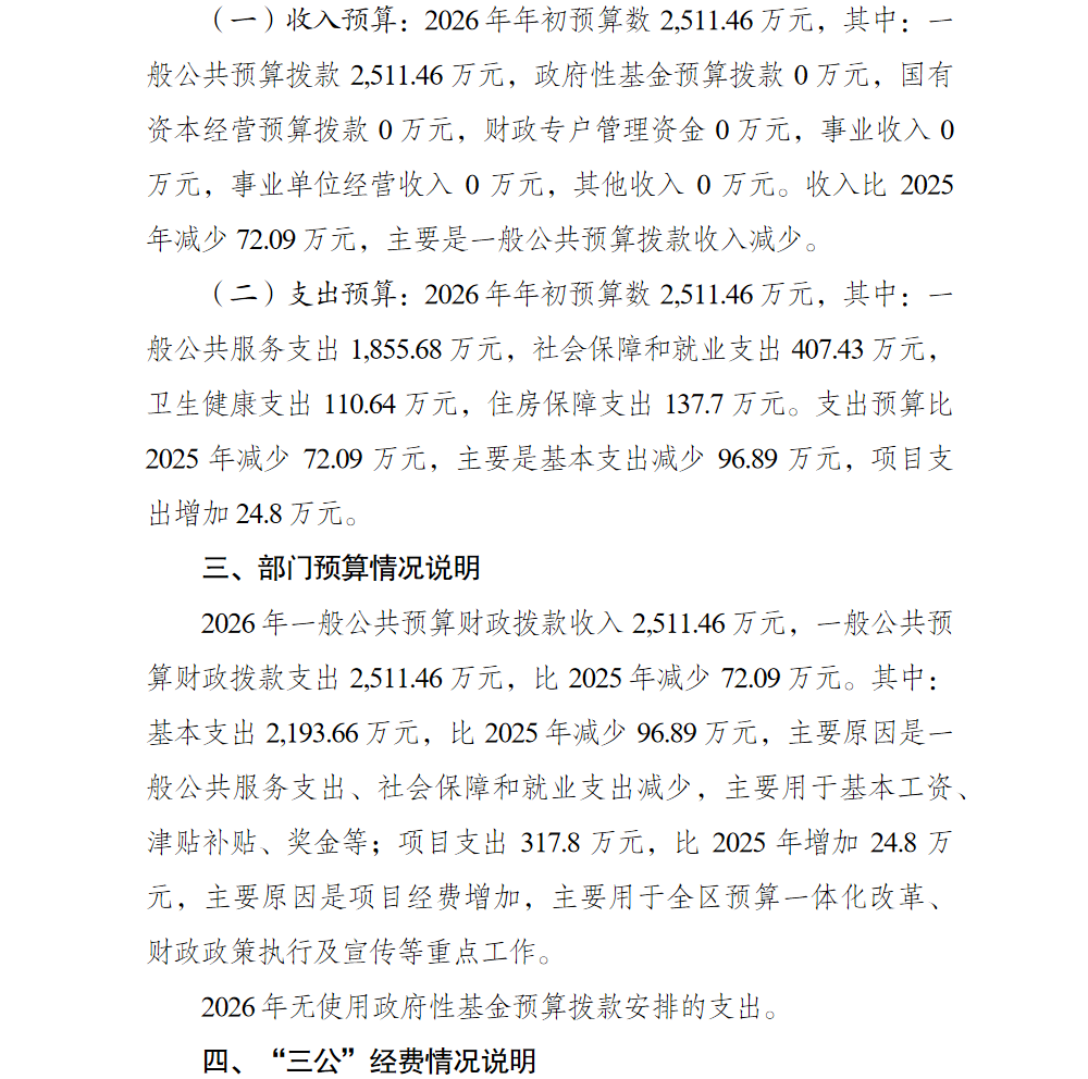 重庆市巴南区财政局2026年部门预算情况说明及附表