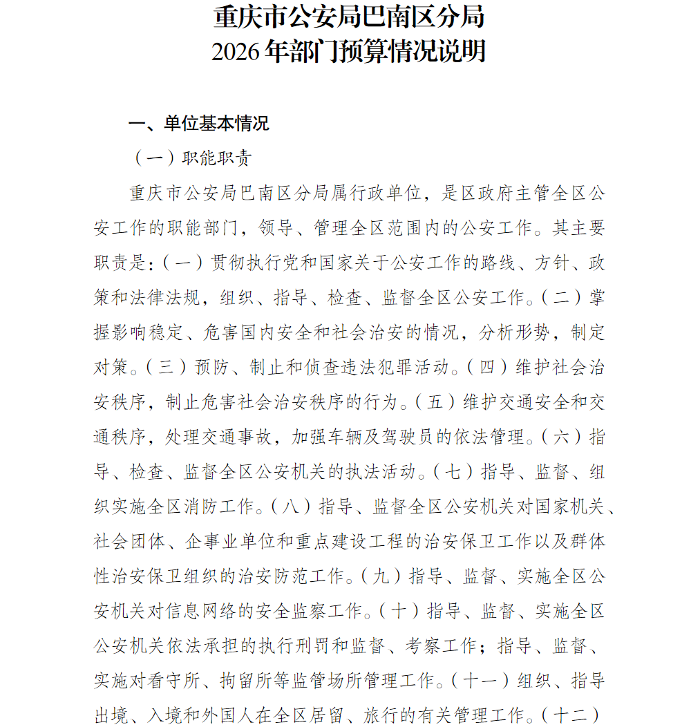 重庆市公安局巴南区分局2026年部门预算情况说明