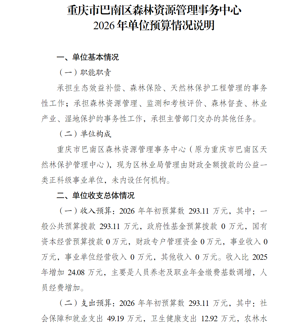 重庆市巴南区森林资源管理事务中心2026年单位预算情况说明及附表.pdf