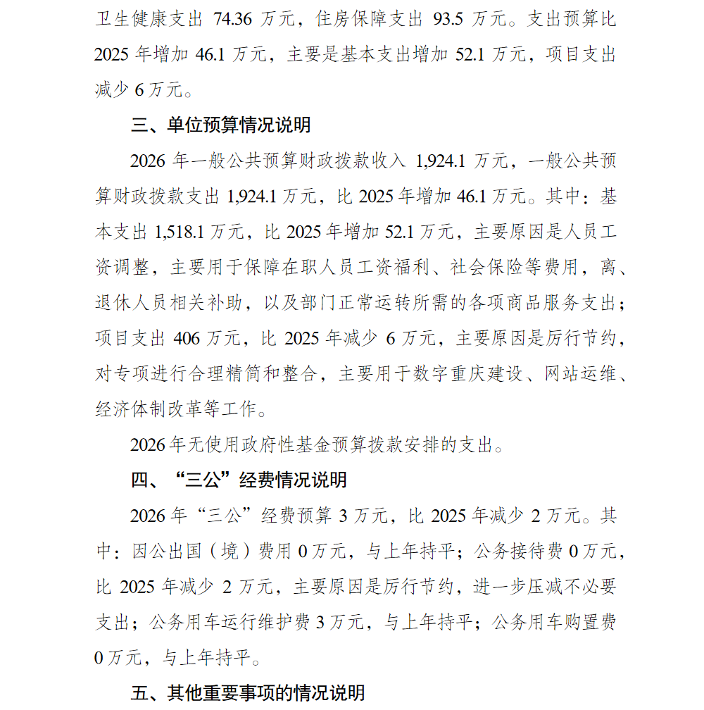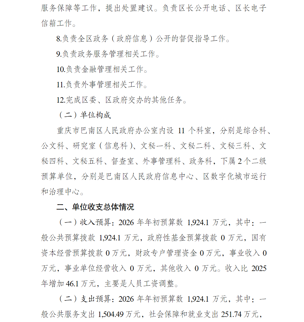 重庆市巴南区人民政府办公室(本级)2026年单位预算情况说明