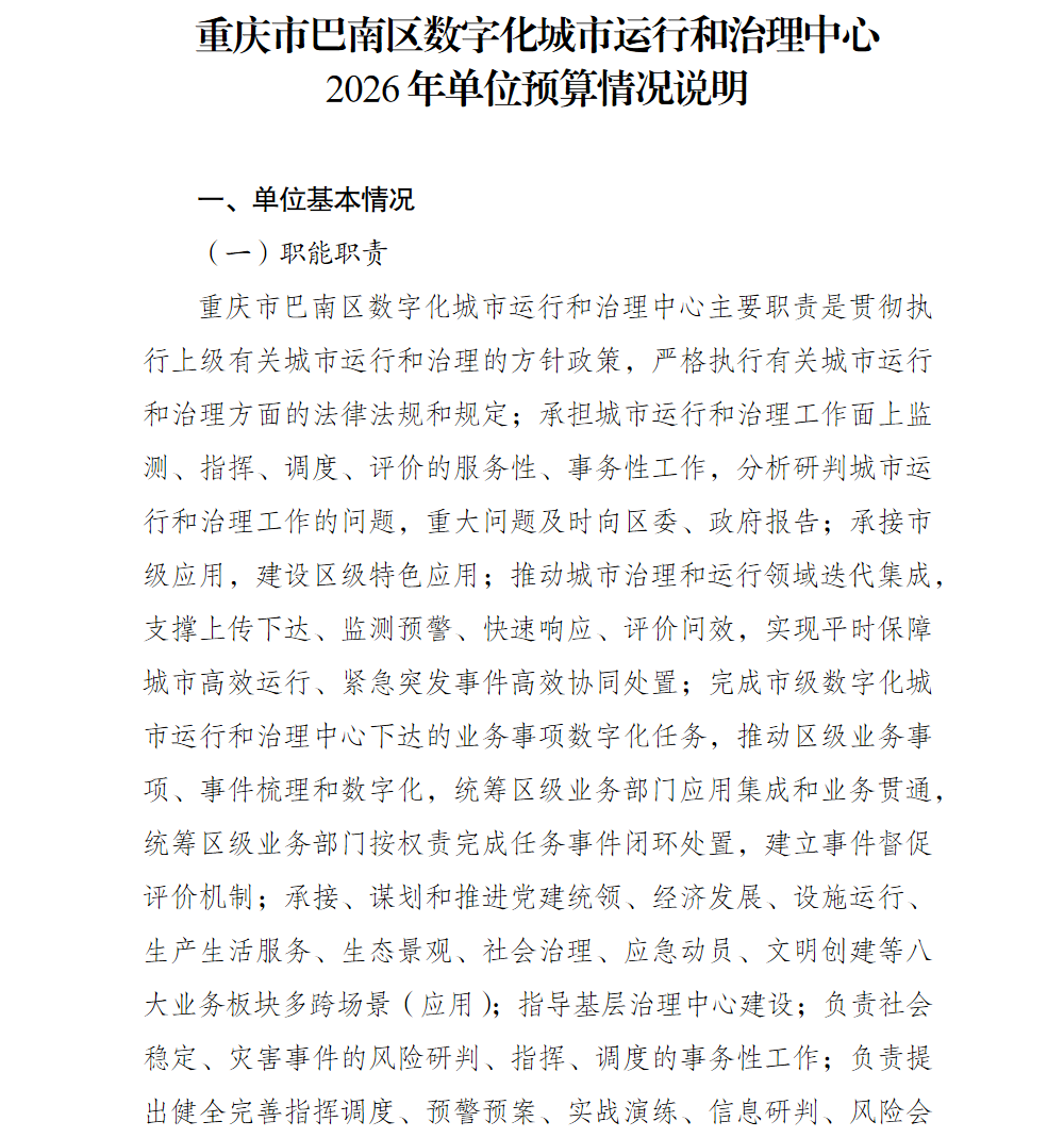 重庆市巴南区数字化城市运行和治理中心2026年单位预算情况说明