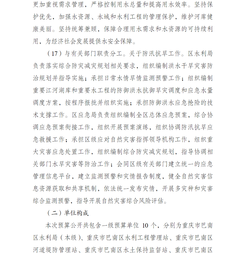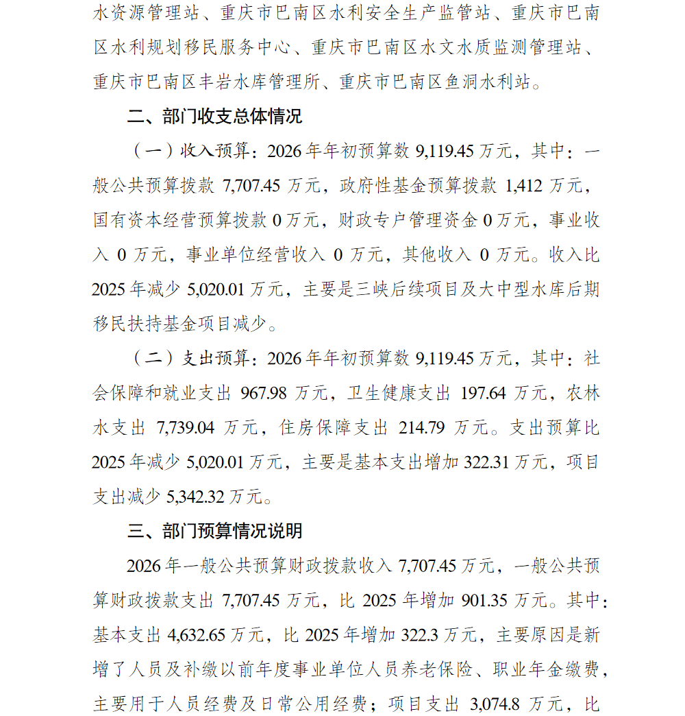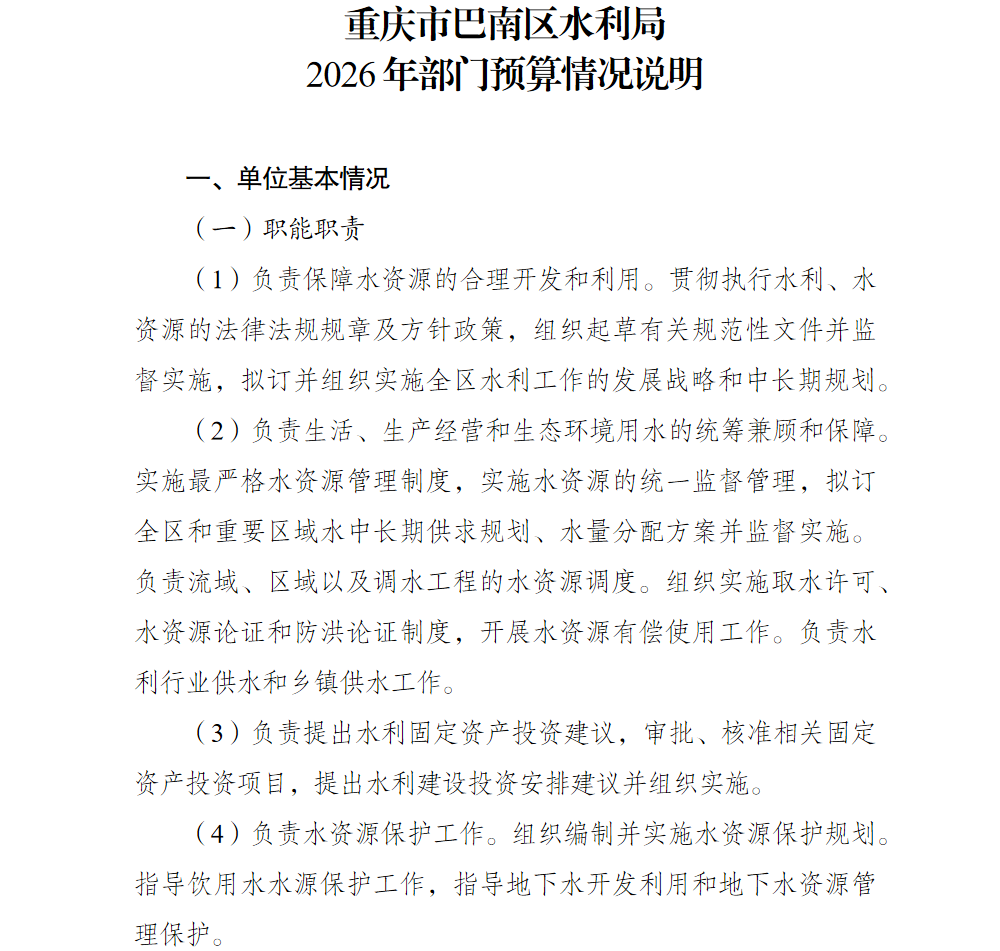 重庆市巴南区水利局2026年部门预算情况说明