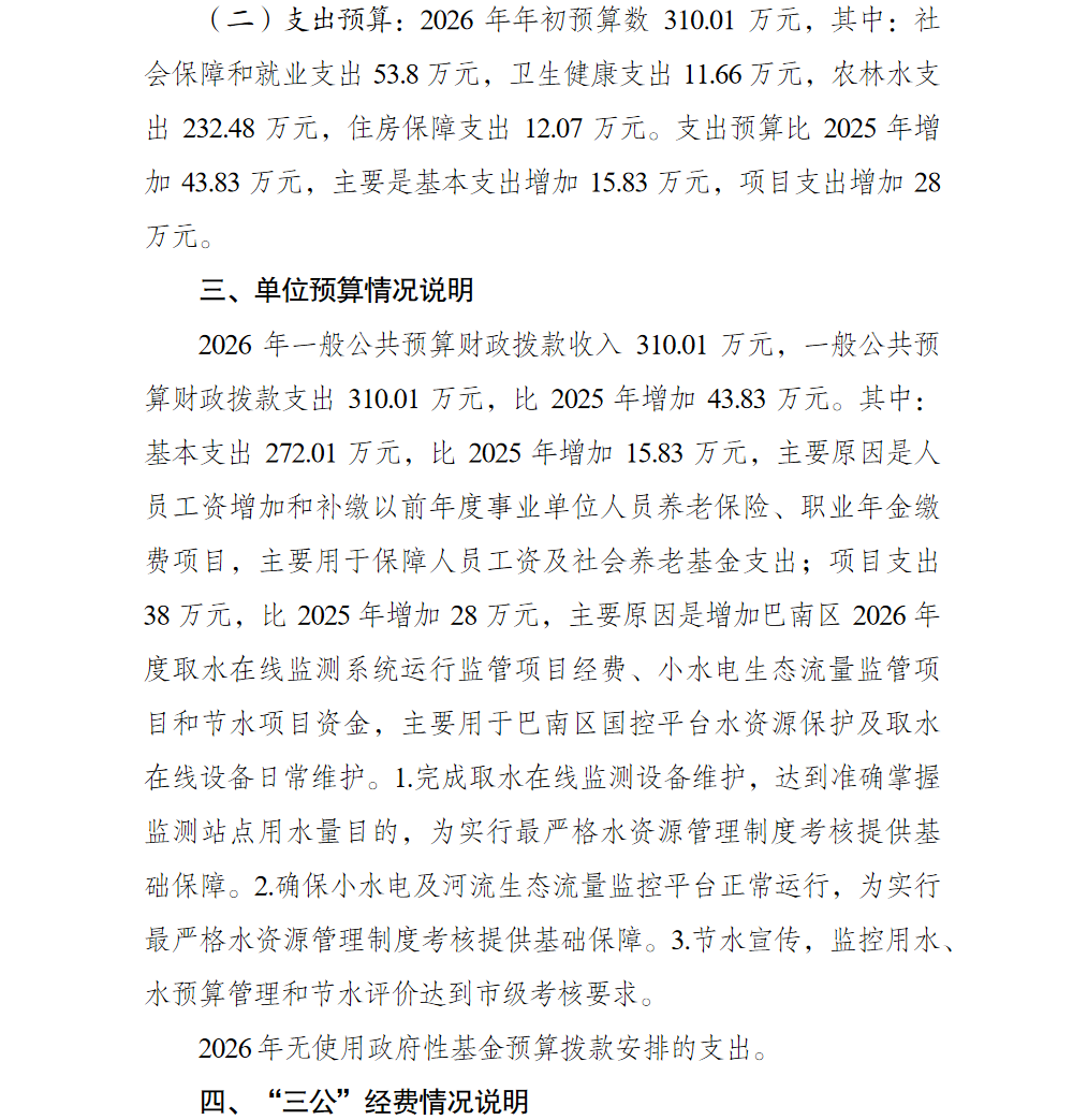 重庆市巴南区水资源管理站2026年单位预算情况说明