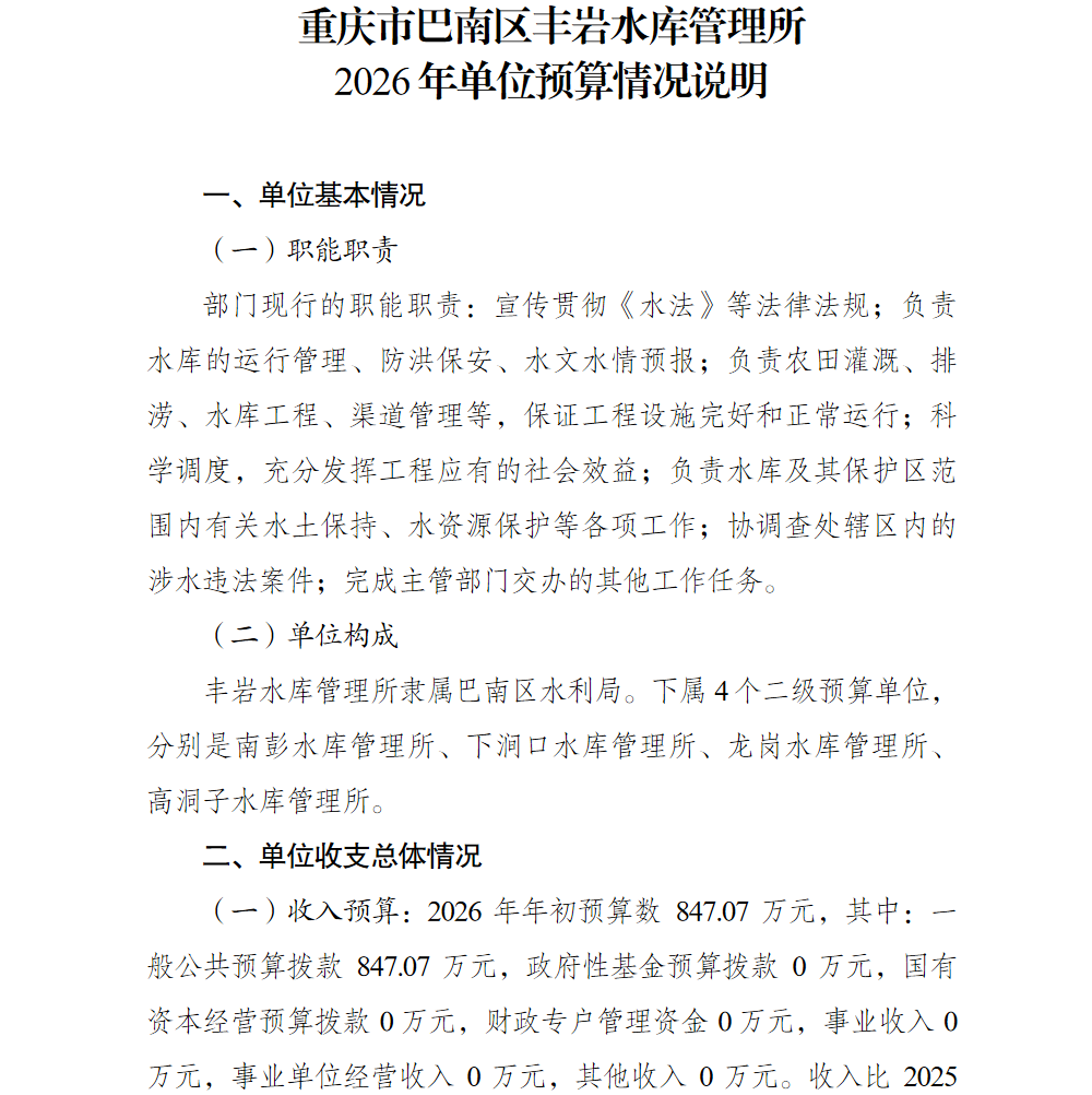 重庆市巴南区丰岩水库管理所2026年单位预算情况说明