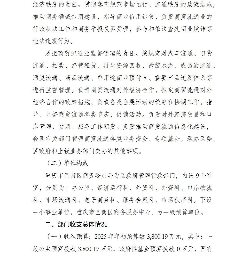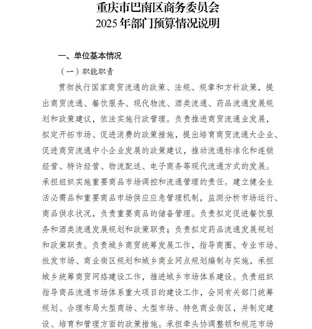 重庆市巴南区商务委员会2025年部门预算情况说明及附表