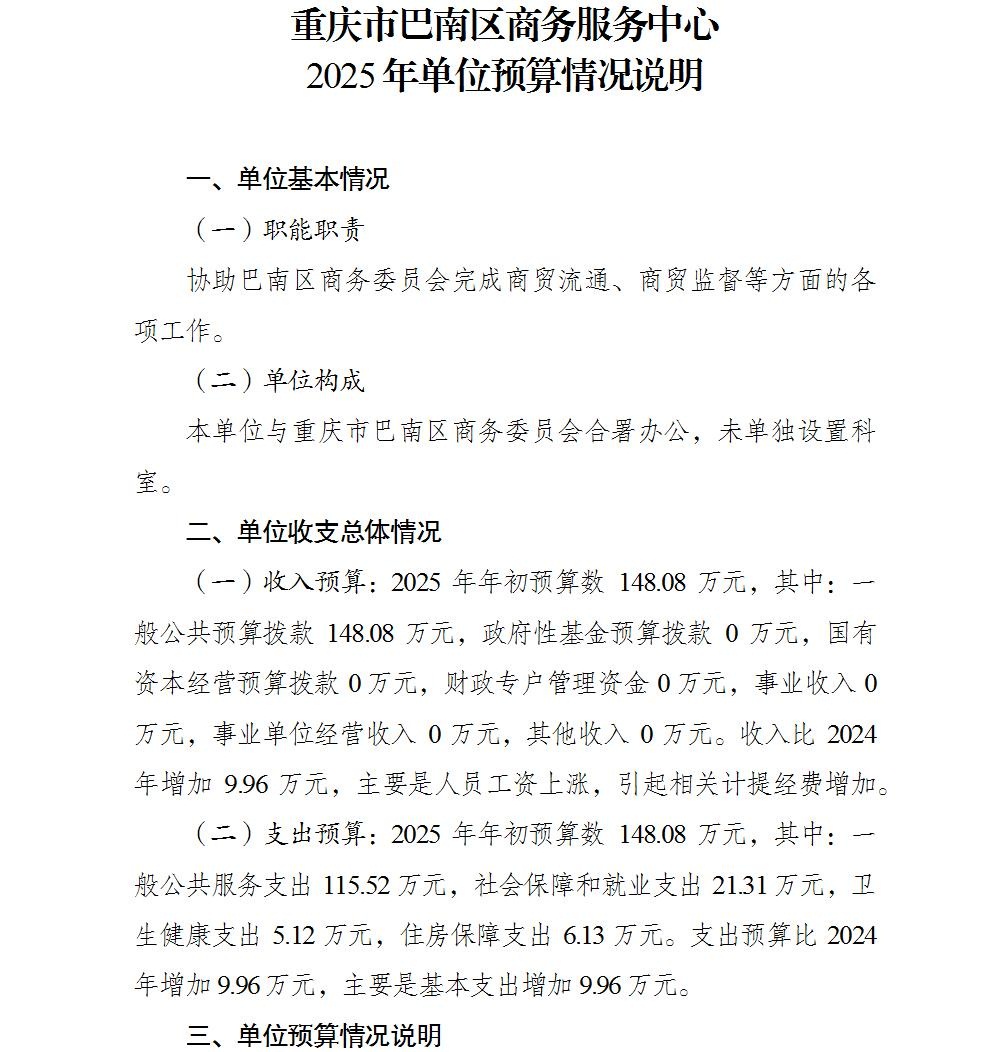 重庆市巴南区商务服务中心2025年部门预算情况说明及附表