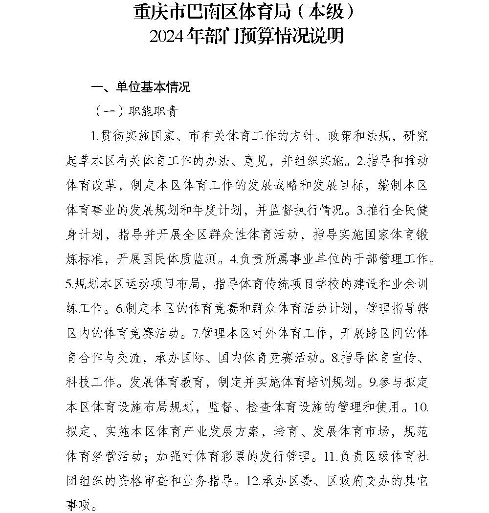 重庆市巴南区体育局2024年部门预算情况说明及附表.pdf 重庆市巴南区体育局(本级)2024年部门预算情况说明及附表.pdf