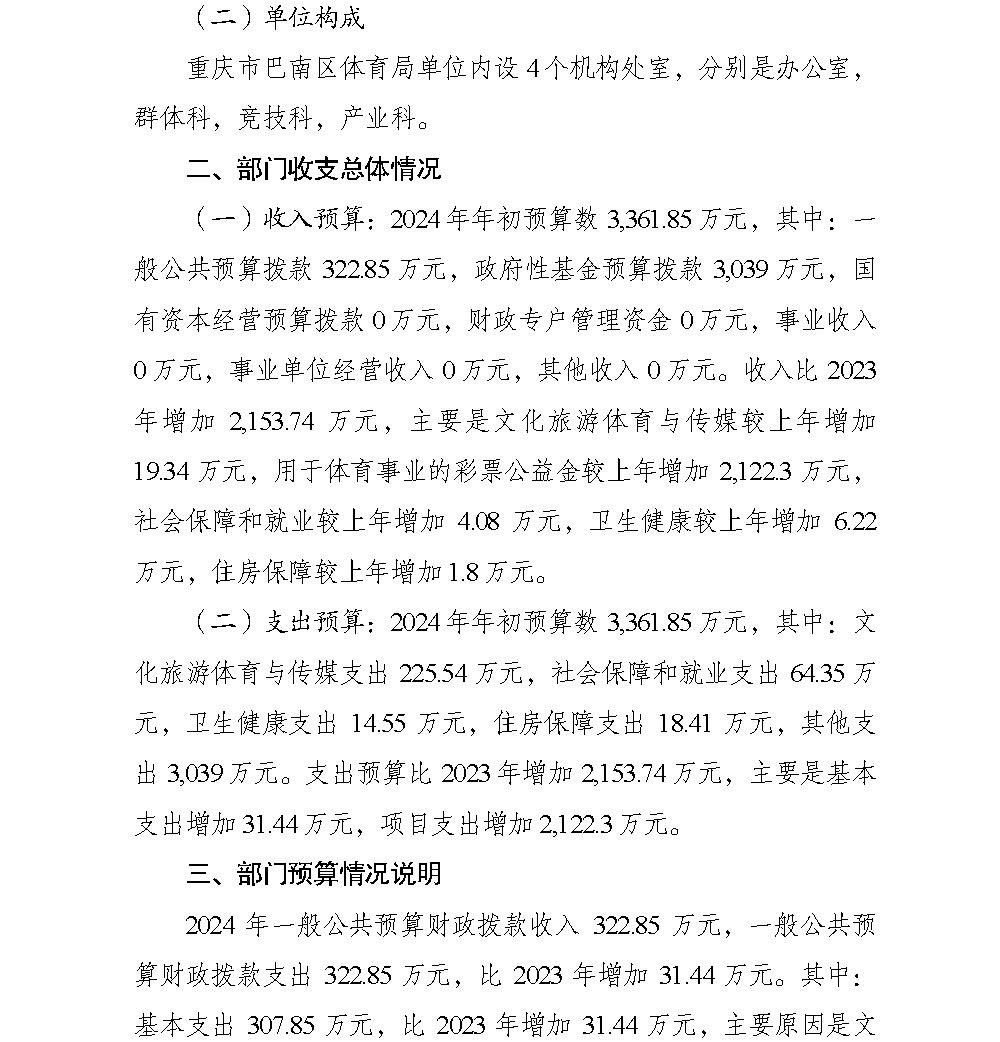 重庆市巴南区体育局2024年部门预算情况说明(汇总级和本级)